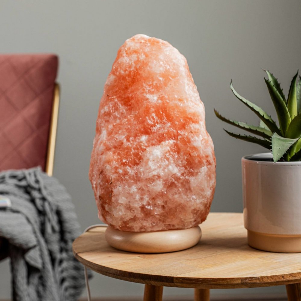Solná stolní lampa Harmony je vybavena přírodním červenoprůsvitným solným kamenem. Vyrobeno v Evropě; zvládnutelné dopravní cesty a snížené emise CO2 - dřevo s certifikátem FSC® - obal bez plastů z recyklovaného materiálu
