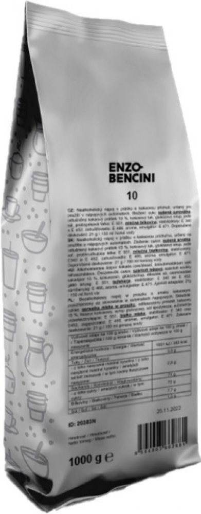 ENZO BENCINI 10% cocoa je instantní kakaový nápoj výrazné kakaové chuti s bohatou pěnou pro nápojové automaty.