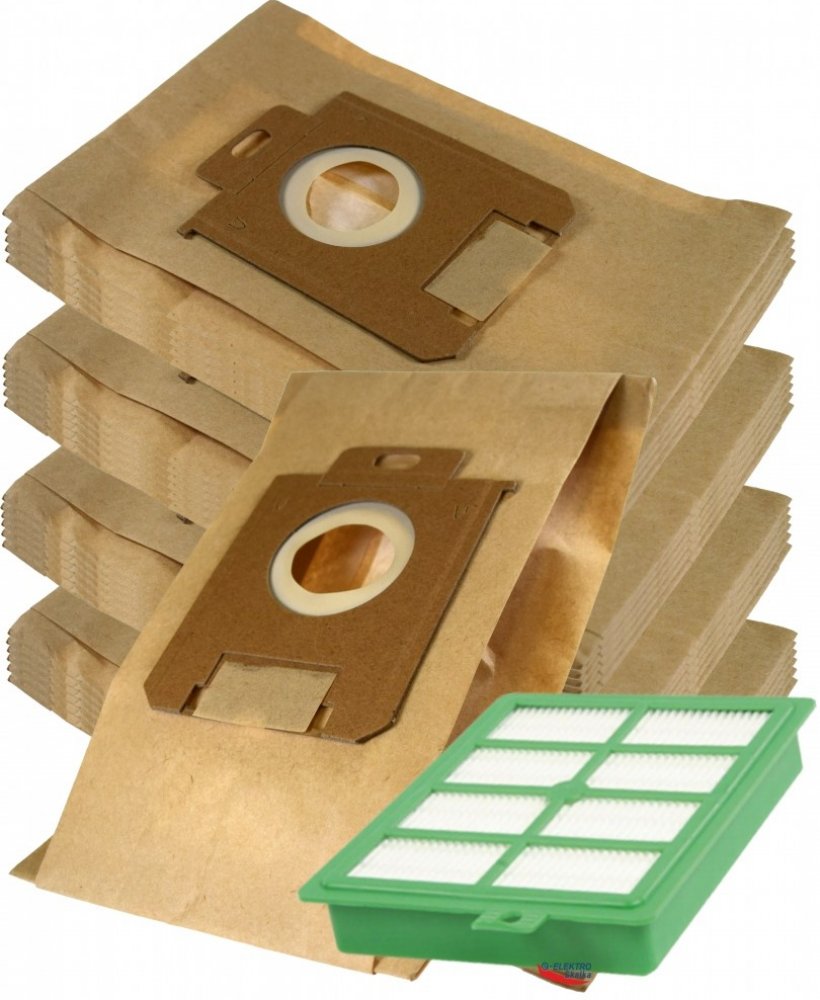 Sada HEPA filtr EP-H12 a 1SBAG Jolly sáčky pro AEG, ELECTROLUX, 24ks sáčkůSada HEPA EP-H12 filtr a 1SBAG Jolly sáčky 24ks papírové pro vysavače ELECTROLUX S-BAG, AEG, Philip s ELECTROLUX E200 S-BAG Classic, ELECTROLUX E200B, ELECTROLUX E200M, ELECTROLUX E200S, E201, E202, E203, E205, E206, E210, E212, UMP3, MENALUX 1800, SWIRL PH86, WORWO ELMB01K Perfect Bag kompatibilní, jsou vhodné do vysavačů A...
