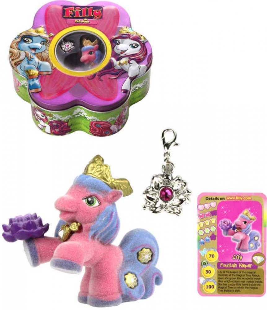 Swarovsky. Jejich ocasy zdobí nádherné kytičky nebo lístečky. Vzácná Filly, princezna Jewel má své čelence kouzelný kámen, který mění barvu podle její nálady. V každém balení je kartička a letáček.