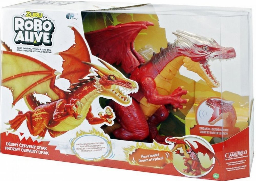 Ohnivý drak chrlící oheň má realistický design a pokročilou robotiku, která napodobuje reálný pohyb doprovázený úžasnými zvukovými a světelnými efekty. Červený drak vypadá jako ze strašidelné pohádky. Chodí, hrozivě otvírá tlamu a vydává zvuky. V tlamě mu svítí červené světlo, které připomíná oheň. Jeho oči se třpytí jako oči živého zvířete. Vypadá opravdu realisticky. Je krásně zbarvený se spoust...