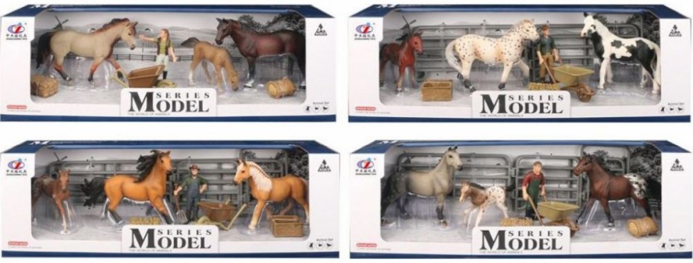Milujete koně a zvířátka? Sbírejte je. Představujeme vám ucelený koncept plný koní a divokých zvířátek. A nejenom to, některé sady obsahují figurky farmářů a různé doplňky. Figurky zvířat i farmářů jsou vyrobené z kvalitního plastu. Jsou propracované do posledního detailu. Bavte se. Vytvořte si úžasný svět zvířátek. Pro děti od tří let.