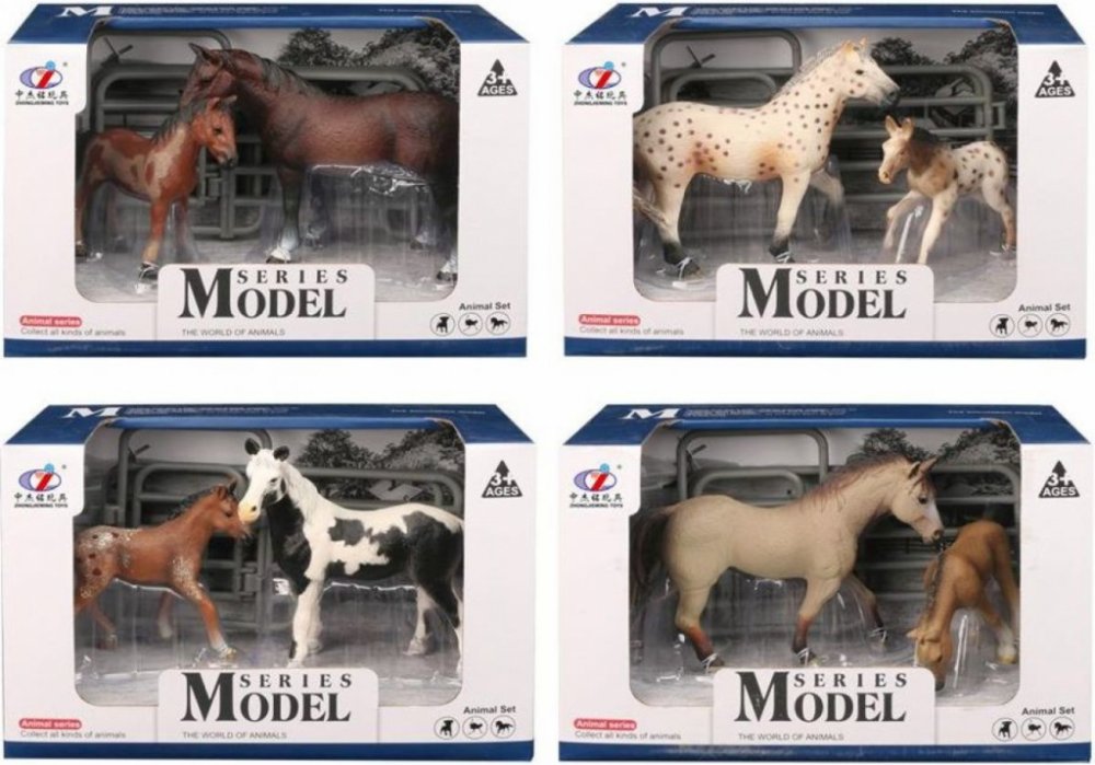 Sada obsahuje: 1 koně, 1 hříbě, část ohrady.