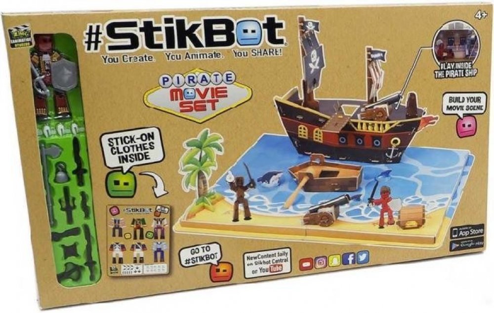 Tyto dvě sady přenesou vaše Stikboty do světa nových dobrodružství. Sestavte pirátskou loď nebo farmu a vymyslete si originální příběhy plné dobrodružství a vzrušení. Sada obsahuje figurku Stikbota, pirátskou loď nebo farmu a spoustu doplňků.