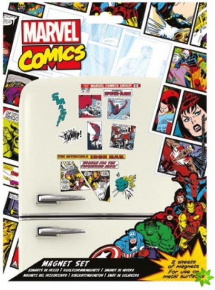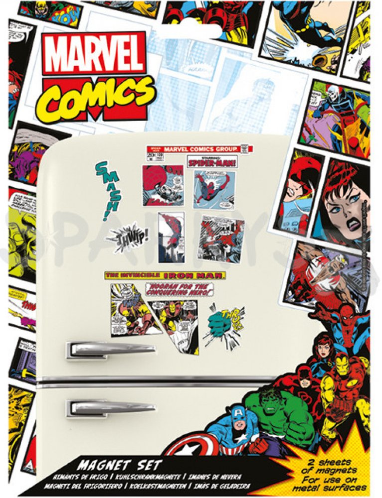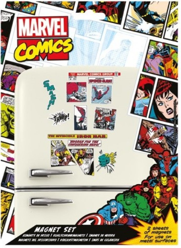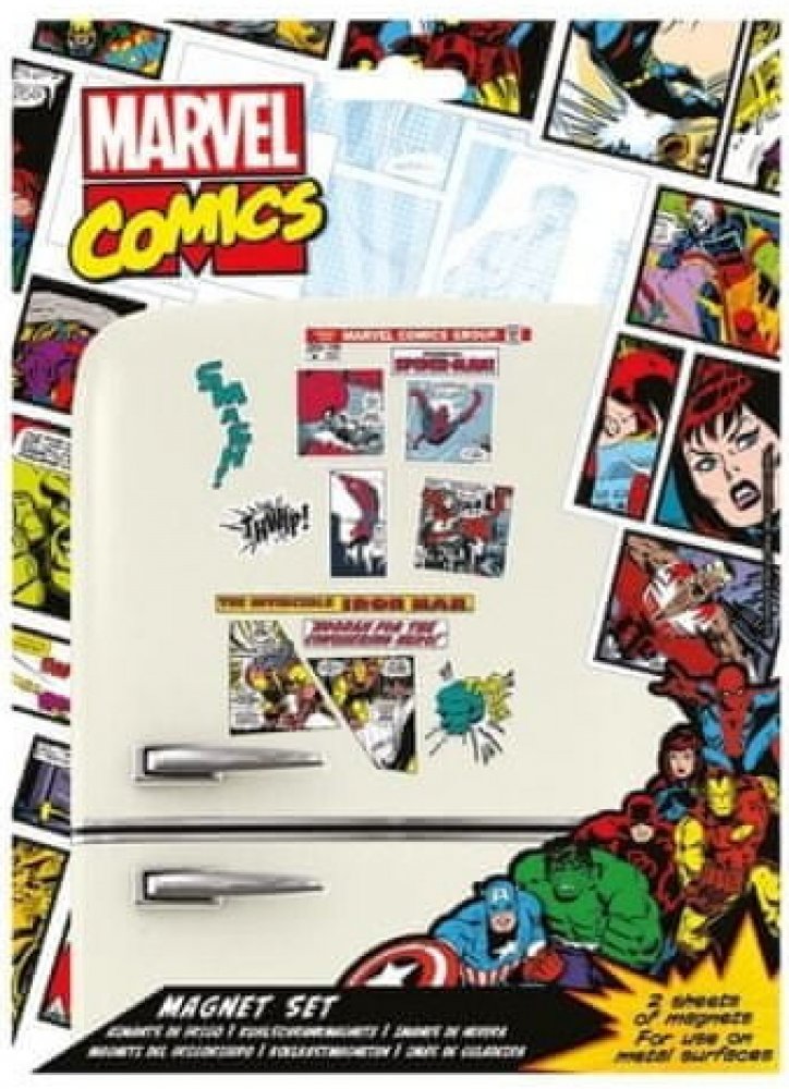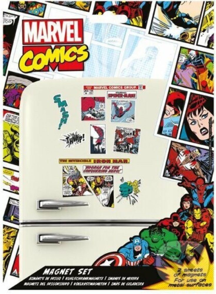 Sada obsahuje originální licenční magnetky s motivem komiksů od Marvelu. Použitelné výhradně na kovový povrch (ideálně na ledničku). Magnetky má doma snad každý z nás a nyní můžete svou sbírku rozšířit o