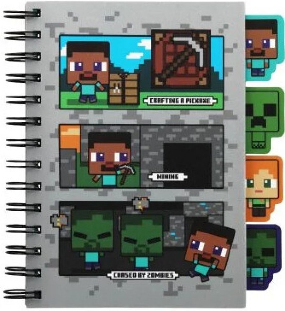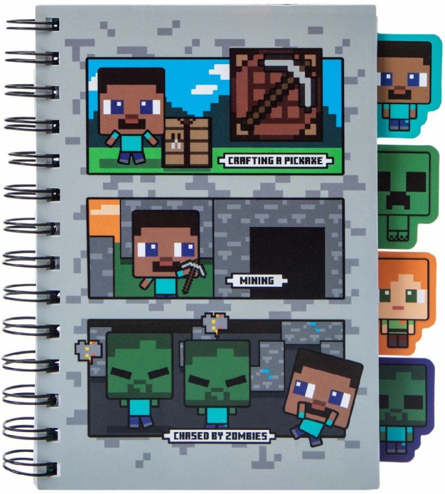 Uvnitř linkovaného zápisníku pro hráče Minecraftu najdeš spoustu místa pro své záznamy a poznámky nejen k herním dobrodružstvím v úžasném světě z kostiček. Zápisník má kroužkovou vazbu a najdeš v něm 4 mobilní oddělovače v podobě Stevea, Alex, Creepera a Zombie. Součástí je také 15 cm dlouhé pravítko.