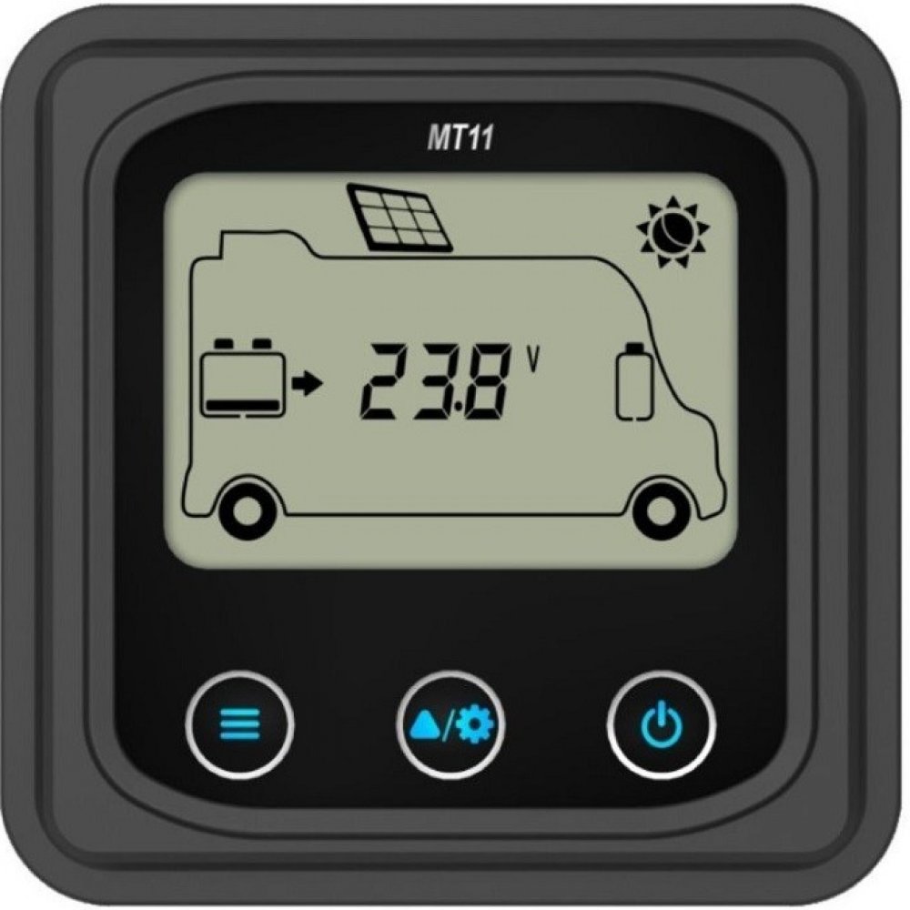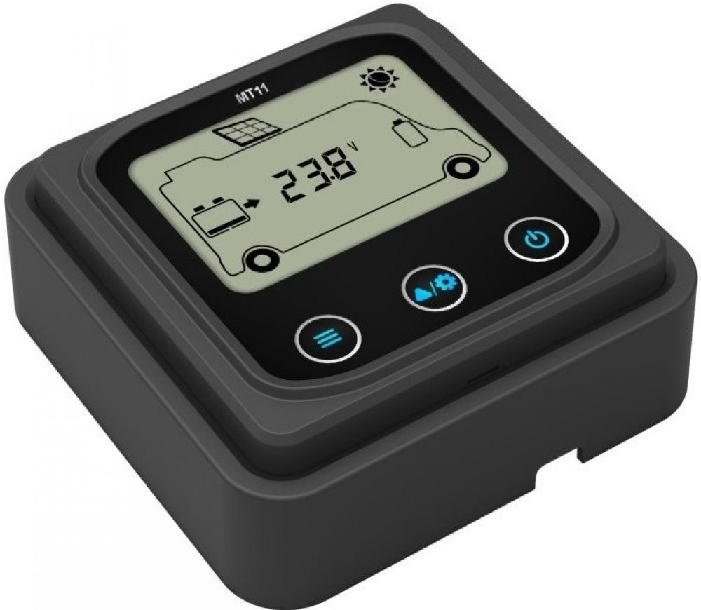 Externí displej řady MT je příslušenství, které je kompatibilní s regulátory řady DuoRacer. Můžete monitorovat provozní data a pracovní stav regulátoru pomocí LCD. Na externím displeji můžete procházet parametry regulátoru, nastavovat typ baterie a jednotky teploty a mazat vygenerovanou energii. Je vhodný pro RV, karavany, lodě atd.