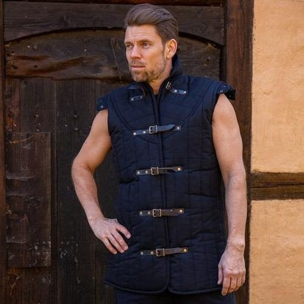 Gambeson bez rukávů (také známý jako krzno nebo prošívanice) je kabátec z prošívané látky, který se ve středověku nosil pod zbrojí - ať kroužkovou či plátovou. Vhodné pro LARP, dřevárnu či divadlo! Gambeson - vesta je černé barvy a zapíná se na přezky (kožené řemínky se sponou). Lze dokoupit rukávy a připojit je za pomoci bavlněných šňůrek a kovových oček. Gambeson je ušit z bavlněného plátna, vyc...