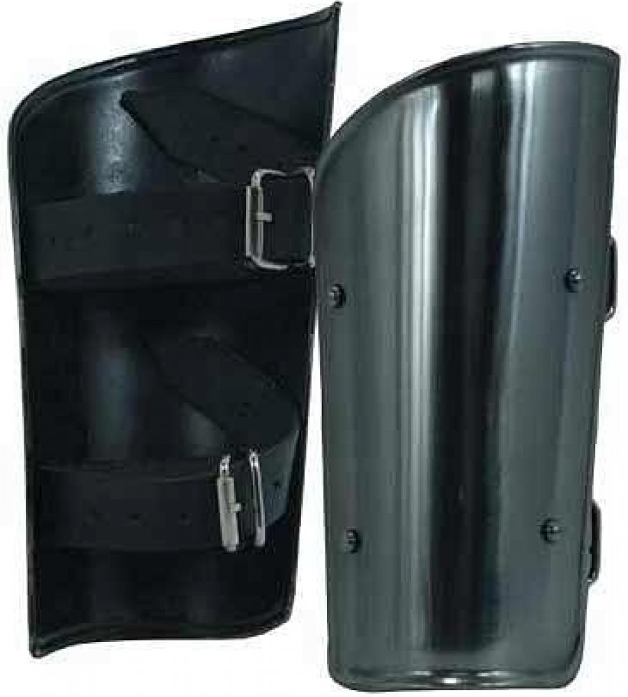 Nátepníky zhotovené z 1 mm silného plechu s lesklou povrchovou úpravou. Upevňují se dvěma koženými řemeny šíře 2,5 cm. Délka nátepníku je cca 25 cm. Vskutku stylový doplněk kostýmu bojovníka, který je zároveň spolehlivou a účinnou ochranou při šermu. Prodáváme pouze v páru, uvedená cena je za dva nátepníky.