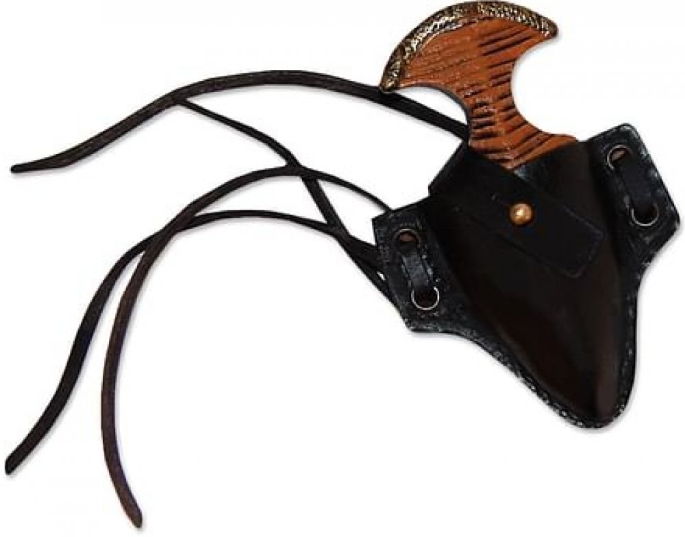 Vrhací dýka s koženým pouzdrem se dá přichytit k opasku nebo zbroji pomocí páru kožených řemínků. Vaše zbraň tak zůstane v bezpečí i během lítých bojů. Pouzdro je vyrobeno z pevné kůže a je vyztuženo prošíváním při okrajích. K dispozici v hnědé a černé barvě. Vrhací dýka z pěnové hmoty s latexovým povrchem je lehká a bezpečná vrhací zbraň na dřevárnu či larp. Pro delší trvanlivost doporučujeme oše...