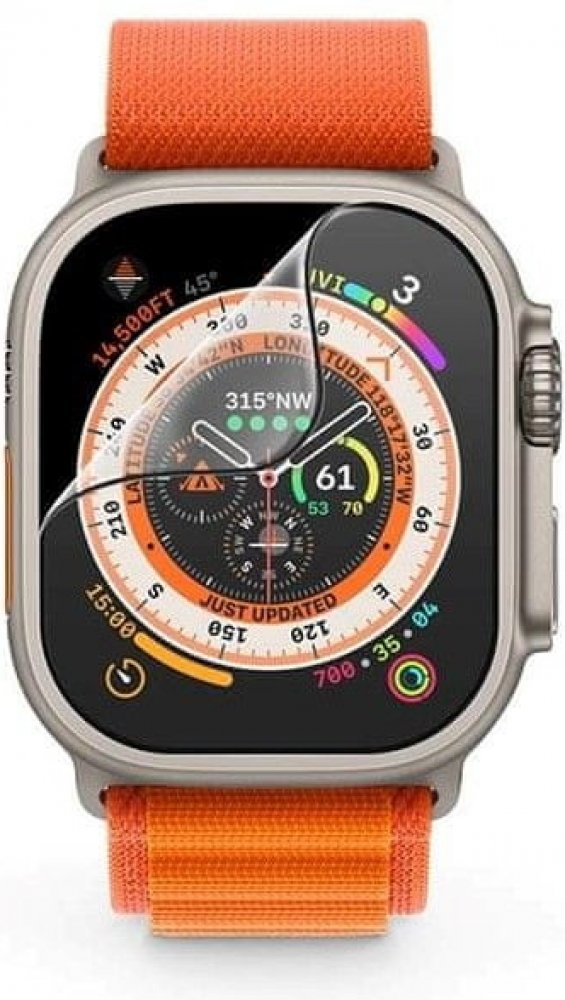 Ochranná fólie pro Apple Watch Ultra 3, Watch Ultra 2 a Watch Ultra 49mm, 49mm a 49mm, tvrdost 9H, zaoblení 2,5D, lesklý povrch, tloušťka 0,19 mm, uchycení po celé ploše, instalační rámeček, čisticí hadřík a samolepka na odstranění prachu součástí balení