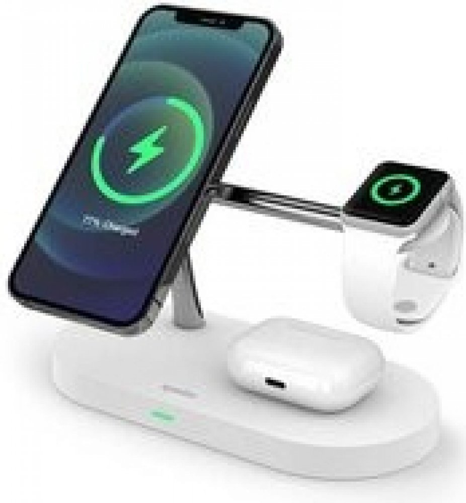 Spello 3in1 Magnetic Wireless Charging Stand je praktická nabíječka kompatibilní s MagSafe technologií. Tento stojan kombinuje výhody bezdrátového nabíjení až tří vašich zařízení najednou s minimalistickým designem. Svůj iPhone můžete nabíjet na stojanu výkonem až 7.5W, ostatní smartphony pak výkonem až 15W. Současně můžete nabíjet své Apple Watch na magnetickém modulu a AirPods na ploše podložky výkonem až 3W. Díky magnetům vaše mobilní zařízení a Apple Watch automaticky přilnou k nabíjecí ploše ve správné poloze, takže nemusíte řešit složité vkládání nebo vyjímání a svá zařízení můžete nabíjet bezpečně bez omezení kabelem či nechtěného přerušení nabíjení. Bezdrátová nabíječka má LED diodu, která vás informuje o připojení nabíječky. Součástí balení je také kabel USB-C na USB-A.