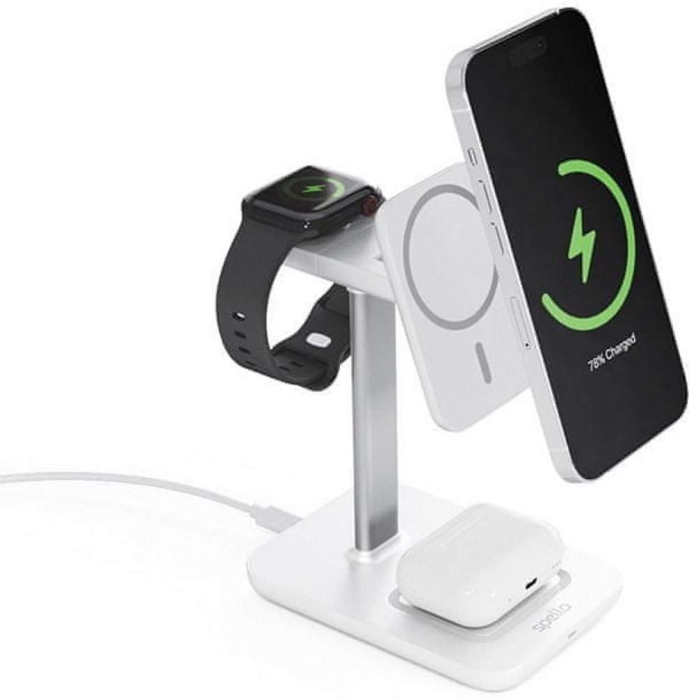 Toužíte po tom, aby vaše chytrá Apple zařízení byla vždy připravená k okamžitému použití? Pořiďte si moderní MagSafe bezdrátovou nabíječku SPELLO a nabíjejte veškerá svá zařízení pohodlně a na jednom místě. Hodí se pro mobily Android a iPhone, chytré hodinky. Tato nabíječka přináší 3 výstupy o výkonu maximálně 23 W. Bezdrátová nabíječka MagSafe je zhotovena v moderním designu, který doplňuje bílá ...
