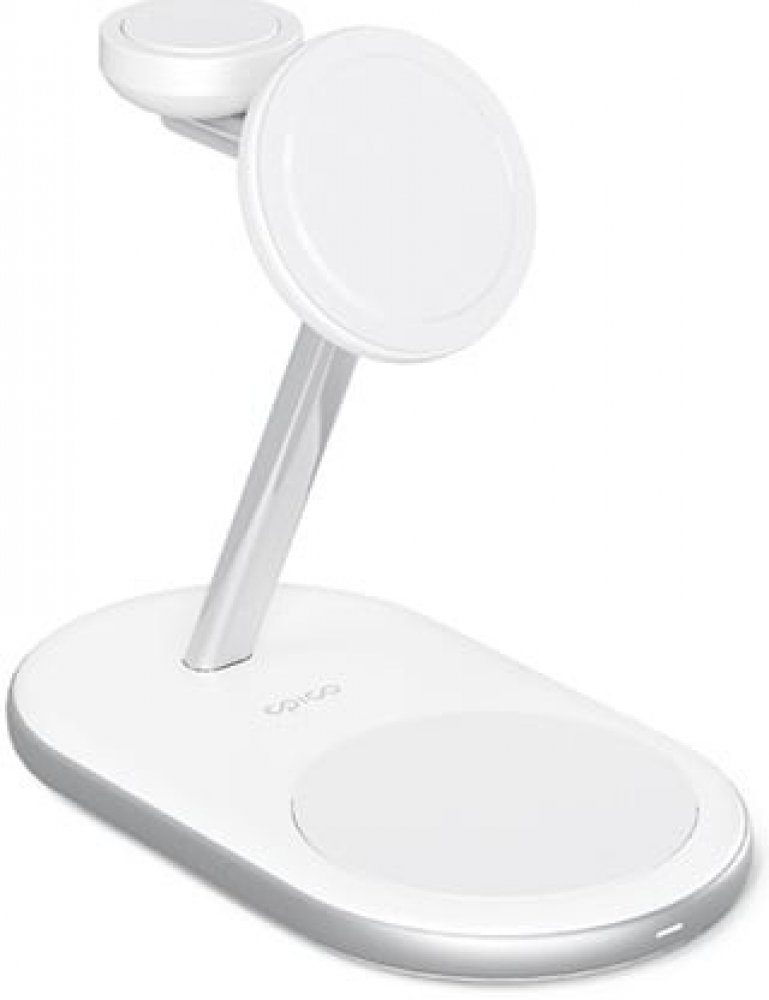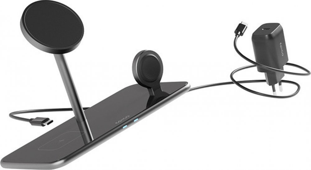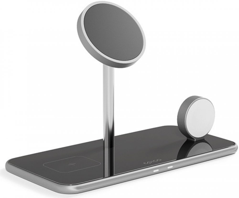 Skleněný nabíjecí stojan Epico Mag+ s MagSafe Epico Mag+ Glass Charging Stand je elegantní nabíječka pro uživatele Apple. Stojan má minimalistický design a je vyrobený z prémiových materiálů. Současně dokáže nabíjet až tři zařízení, včetně vašeho iPhonu, Apple Watch a AirPods. Spodní nabíjecí plocha nabízí výkon až 10 W, takže můžete nabíjet i druhý smartphone. MagSafe modul je vyrobený ze skla a podporuje výkon až 15 W (7,5 W pro iPhone). Díky silným magnetům jej lze použít jako držák pro váš iPhone, a to jak na šířku, tak na výšku. Součástí balení je také USB-C kabel a 25W adaptér. Hlavní vlastnosti MagSafe kompatibilní Bezdrátové nabíjení až 15 W (7,5 W pro iPhone) Bezdrátové nabíjení pro AirPods 5 W/10 W Bezdrátové nabíjení pro Apple Watch 2,5 W