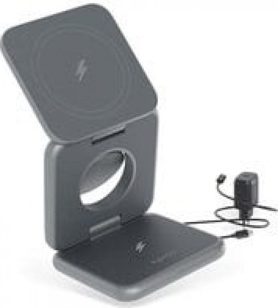 Vstupní napětí/proud: DC 5 V/3 A, 9 V/2,22 A, 12 V/3 A, Bezdrátový výstup 1 (iPhone): 15 W/10 W/7,5 W, Bezdrátový výstup 2 (Apple Watch): 3 W, Bezdrátový výstup 3 (AirPods): 5 WCelkový bezdrátový výstup: 23 W, Materiál: slitina hliníku, silikon, Rozměry: 68×68×23 mm, Hmotnost: 195 g