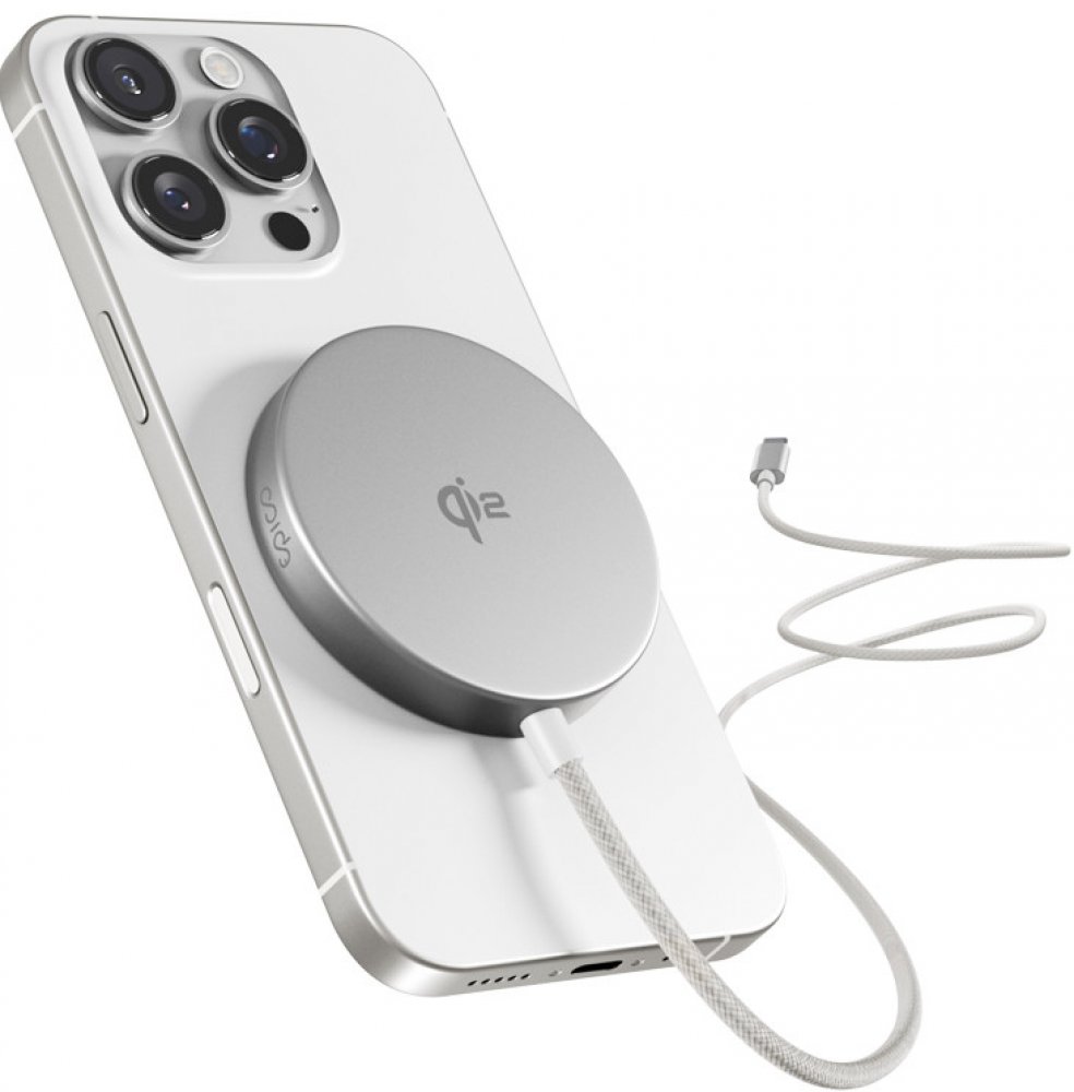 Bezdrátová nabíječka, certifikace Qi2, podpora MagSafe, výkon 15W, integrovaný 1,2m kabel USB-C. Rychlé a bezpečné nabíjení s Qi2 Certifikace Qi2 & kompatibilita s MagSafe Užijte si rychlé 15W bezdrátové nabíjení díky technologii Qi2 i pro iPhony. Nabíjejte až 2× rychleji než s běžnými Qi nabíječkami. Silný magnet: Udrží váš telefon bezpečně na místě a zároveň umožní pohodlné používání bez přerušení nabíjení. Hliníkové tělo: Elegantní a odolný design skvěle doplní váš telefon, ať už nabíječku používáte