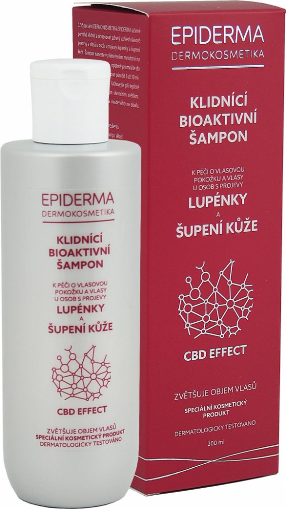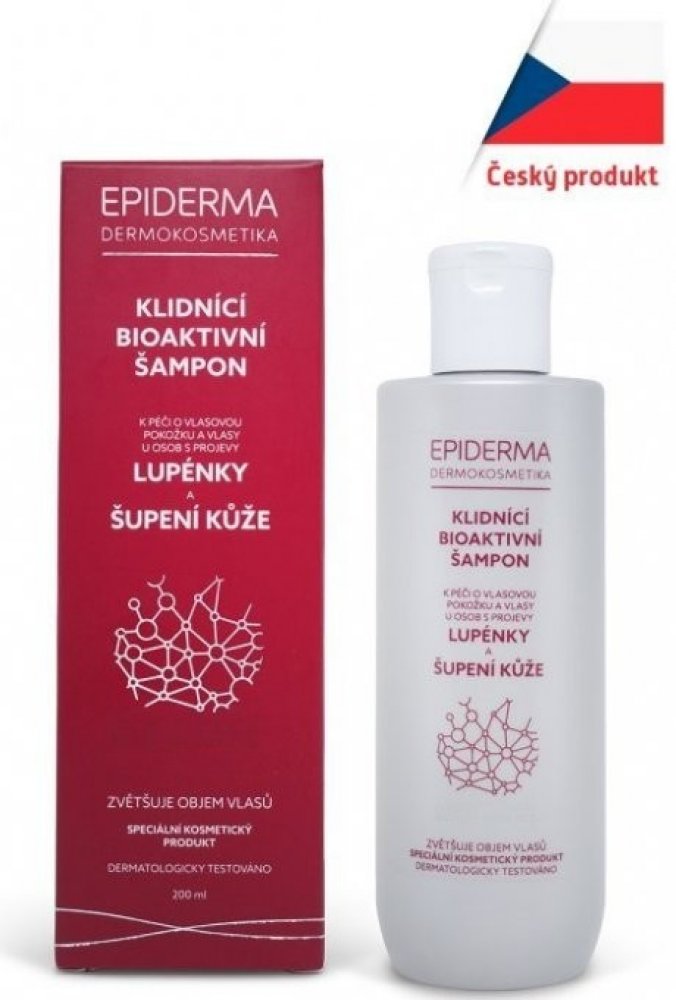 Speciální dermokosmetika EPIDERMA® v podobě šampónu má zklidňující účinek na problematickou kůži při lupénce ve vlasové části. Součástí složení je protizánětlivá a generačně nová dermatologická kompozice Betuldiol® a moderní nedráždivé kondicionéry. EPIDERMA® šampón pomáhá odstranit nepříjemný pocit svědění a šupiny kůže ve vlasové části hlavy jak při lupénce, tak i při seboree. Šampón na lupénku a seboreu zároveň zvětšuje objem vlasů. Příjemným bonusem je zabránění vypadávání vlasů. Tento šampón proti lupénce nejenže redukuje přebytečný maz, ale současně jim dodává nevšední lesk a pevnost. Vlasy jsou příjemné na dotek a poddajné.