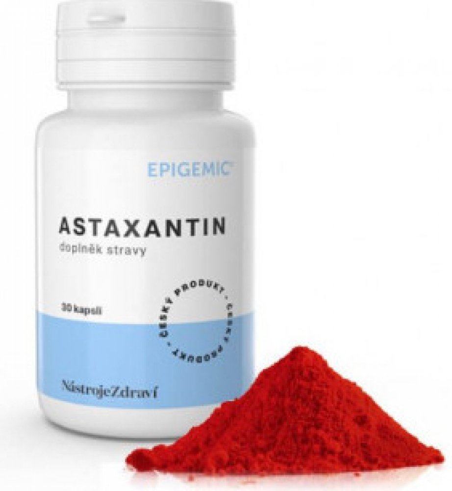 Astaxantin Epigemic je vyroben z extraktu řasy Haematococcus pluvialis, která obsahuje beta-karoten, lutein, vitamin E a vysoký podíl astaxantinu. Ten je známý jako vzácné barvivo ze skupiny karotenoidů a v přírodě se vyskytuje např. v mase lososů, krevet, nebo v některých řasách.