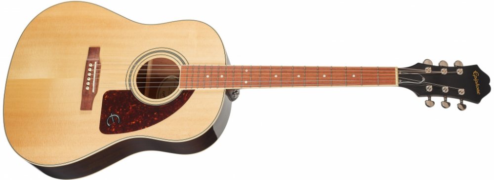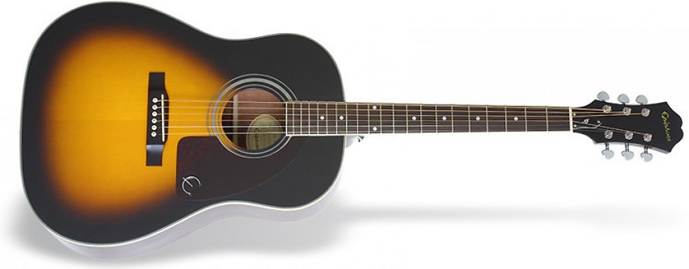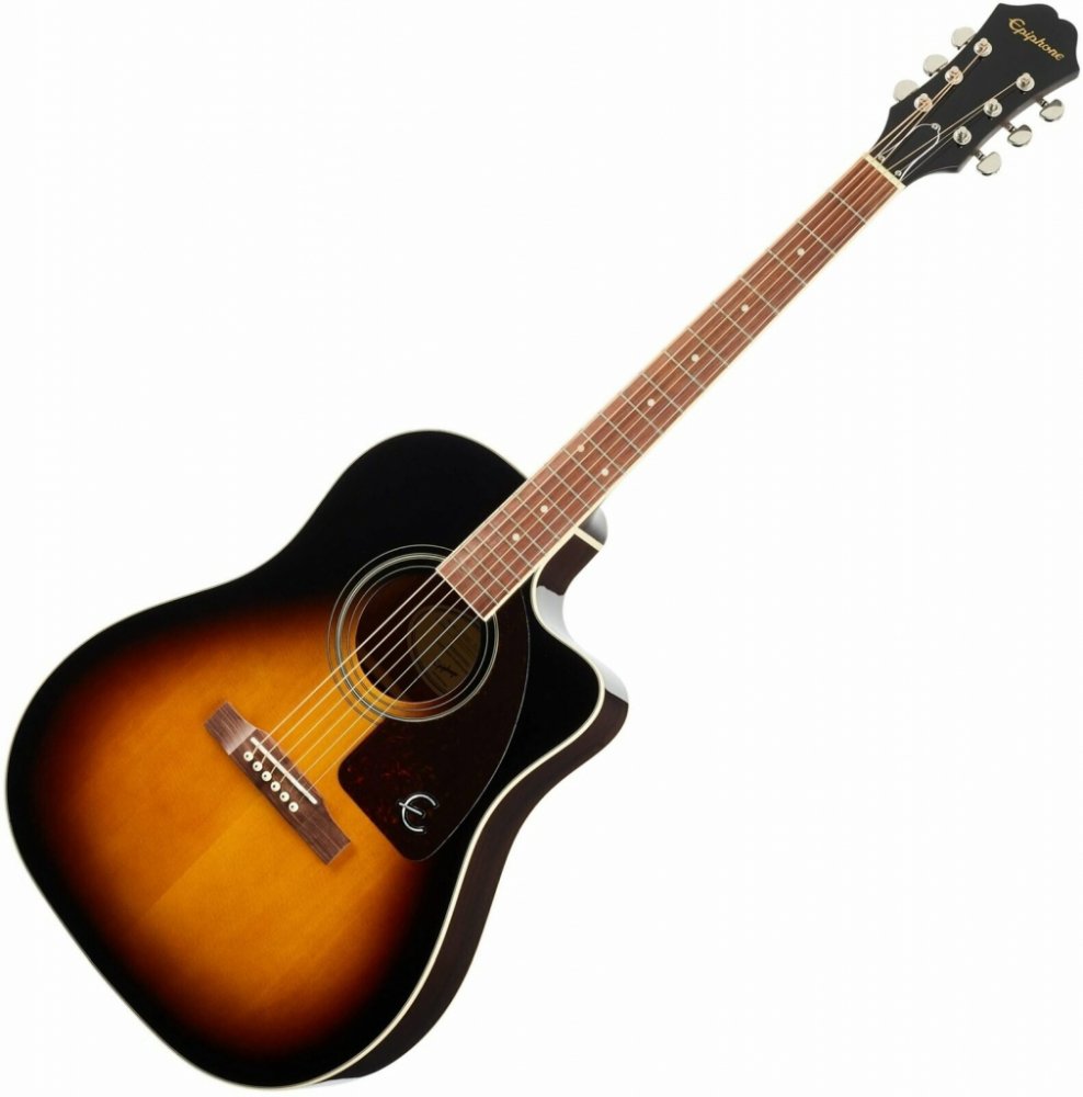 Akustická kytara Akustické kytary značky Epiphone jsou známé hudebníkům na celém světě pro kvalitu zpracování a atraktivní cenu. Model Epiphone J-45 Studio Solid Top VS nabízí tělo se zaoblenými rameny vycházející z konceptu Round Shoulder. Přední deska nástroje je zhotovena z masivního smrku Sitka, zadní deska a luby z překližovaného mahagonu. Ke krku z okoumé je přilepen hmatník z fíkovníku osazený dvaceti pražci velikosti Medium Jumbo a poziční tečkami z imitace perleti. Struny jsou ukotveny ve firemních ladících mechanikách a kobylce z fíkovníku. Stylové zpracování podtrhuje pickguard, bílá obvodová lemovka topu a firemní logo na hlavici.