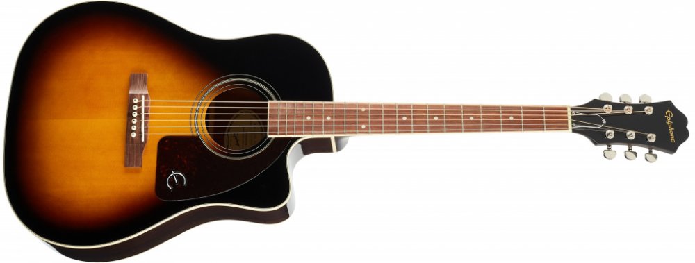 Elektroakustická kytara Akustické kytary značky Epiphone jsou známé hudebníkům na celém světě pro kvalitu zpracování a atraktivní cenu. Elektroakustický model Epiphone J-45EC Studio Solid Top Fishman Presys-II VS nabízí tělo se zaoblenými rameny vycházející z konceptu Round Shoulder. Přední deska nástroje je zhotovena z masivního smrku Sitka, zadní deska a luby z překližovaného mahagonu. Ke krku z okoumé je přilepen hmatník z fíkovníku osazený dvaceti pražci velikosti Medium Jumbo a poziční tečkami z imitace perleti. Struny jsou ukotveny ve firemních ladících mechanikách a kobylce z fíkovníku. Stylové zpracování podtrhuje pickguard, bílá obvodová lemovka topu a firemní logo na hlavici. O snímání zvuku se stará elektronika Fishman Presys-II s dvoupásmovým ekvalizérem a zabudovanou ladičkou.