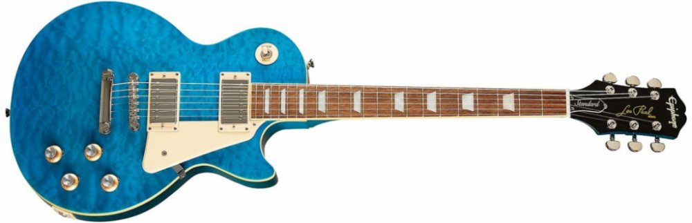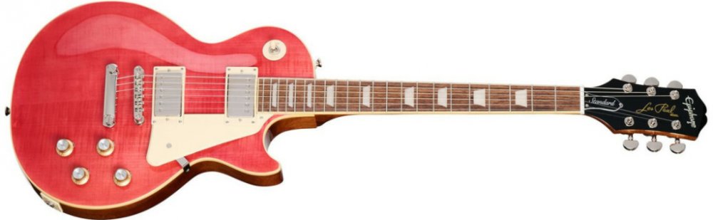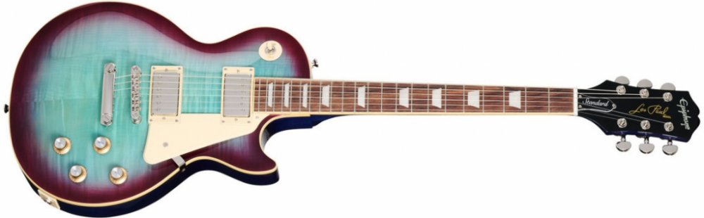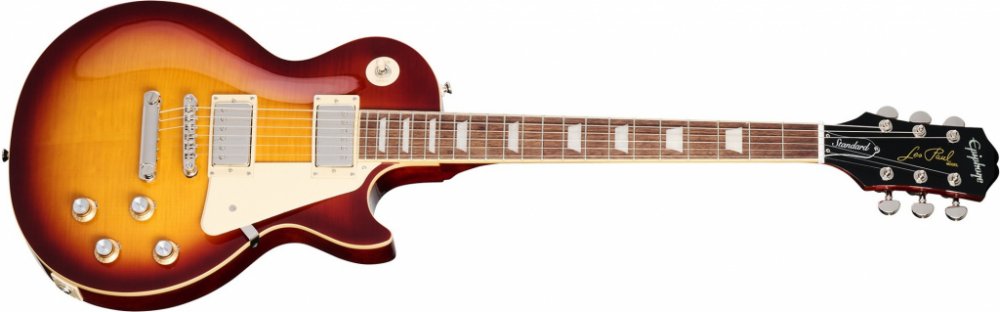 Elektrická kytara Elektrické kytary Epiphone představují finančně dostupnější alternativu originálů s logem Gibson. A to platí i v případě elektrických kytar Les Paul Standard 60s vracejících se k feelu, vzhledu a zvuku nástrojů Les Paul ze začátku 60. let minulého století. Tělo elektrické kytary Les Paul Standard 60s Figured Iced Tea Burst ze dřeva okoumé (gaboon mahogany) zdobí top z figurovaného javoru kvality AAA. Kresbu figurovaného javoru zvýrazňuje lesklý lak. K mahagonovému krku s pohodlným a rychlým SlimTaper 60s “C” profilem je přilepen hmatník z fíkovníku osazený dvaadvaceti pražci velikosti Medium Jumbo. Orientaci na hmatníku usnadňují polohové bloky z imitace perleti. Dva tovární humbuckery ProBucker, tj. krkový ProBucker 2 a kobylkový ProBucker 3 s o něco vyšším výstupem, zdařile emulují zvuk PAF snímačů. Poskytují kytaře plný vřelý tón, který oceníte s čistým i rockově zkresleným zvukem. Charakter zvuku upravíte pomocí potenciometrů hlasitosti, tónové clony a třípolohového přepínače snímačů. Struny jsou uchyceny v kvalitních ladicích mechanikách Grover Rotomatic s kolíčky Kidney a přes nastavitelnou kobylku LockTone TOM ve struníku. Stylový design podtrhuje světlá obvodová lemovka těla a hmatníku a krémový pickguard. Kytara je dodávána v obalu (premium gig bag).