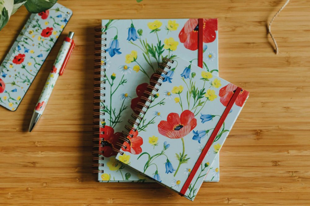 Pevné kašírované desky zdobené autorskou ilustrací divokých květů jsou potažené sametovou laminací, která je na dotek hebká a odolná. Diář je opatřen elastickou gumičkou v červené barvě pro bezpečné zavření. Velikost diáře je praktická a skladná, díky malému rozměru se vám diář vejde i do menší tašky nebo batohu a můžete jej mít neustále u sebe pro rychlé zapisování. Diář nabízíme ve dvou praktických velikostech – A5 pro více prostoru na psaní a A6 jako skladnou verzi do kabelky či batohu.