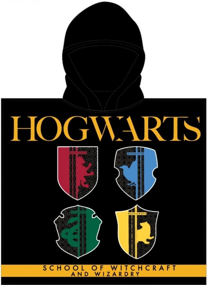 Co je to? Vypadá to, jako kdybyste do ubrusu vystřihli díru, našili na něj kapuci a přetáhli si ho přes hlavu. Nenechte se však oklamat: dětské pončo je velmi pohodlným kusem oblečení. Příjemně se nosí a poskytuje volnost, kterou děti v neustálém pohybu nanejvýš potřebují. Pokud je chlapecké pončo z kvalitního materiálu jako bavlna, je ideálním společníkem pro vaše dítě. K tomu si připočítejte množství motivů oblíbených pohádek, ze kterých si můžete vybírat, jako např. Bing, Frozen nebo Spiderman. Dětské pončo je jednoduše unikátním kusem dětského šatníku. Darujte svému dítěti dětské pončo velikosti 55 x 110 cm v barvě černá z materiálu 100% polyester. Motiv Harry Potter mu zaručeně vykouzlí úsměv na tváři.Země původu: ChinaÚdržba: Optimální teplota praní je 30 °C, ideální praní v rukou z rubové strany, nesušit v sušičce, chemicky nečistit a nebělit. Při praní v pračce doporučujeme použít prací sáček a prostředek na jemné prádlo. U barevného oblečení prací prostředek s označením COLOR. Dále se vždy řiďte podle symbolů na štítku.