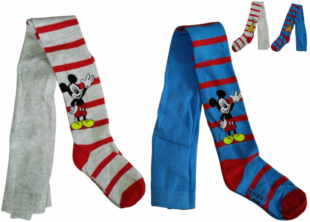 Dětské punčošky pro kluky Mickey Mouse a pes Pluto - Disney. Punčocháče jsou vyrobeny z příjemného a měkkého materiálu, který je i přiměřeně elastický, aby se dobře přizpůsobil postavě. Mají vysoký sed, takže neslézají a dostatečně širokou gumu v pase, a proto je jejich nošení pohodlné. Tyto punčochy dodáváme ve velikostech 98 / 104, 110 / 116, nebo 122 / 128 a v šedé, nebo modré barvě. Viz výběr ...