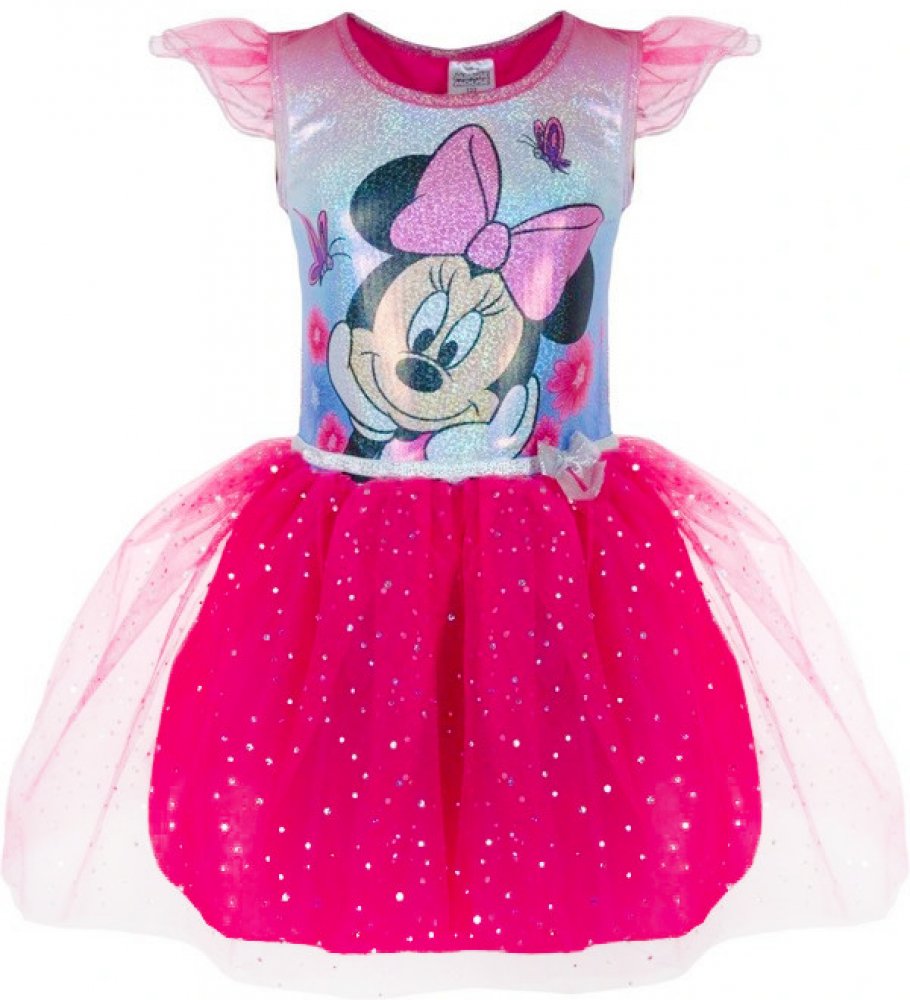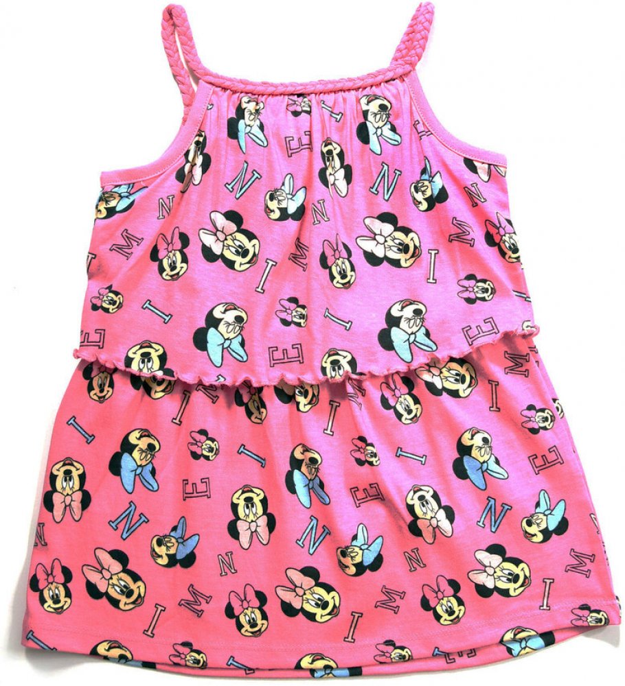 Krásné dívčí šaty s motivem Minnie Mouse. Vyrobeny jsou ze 100% bavlny pro maximální pohodlí. Jsou ozdobené malými obrázky a písmenky Minnie. Takové šaty by neměly chybět v šatníku vaší milované princezny. Zboží je dostupný voveľkostiach: 98, 104, 110, 116, 122, 128.