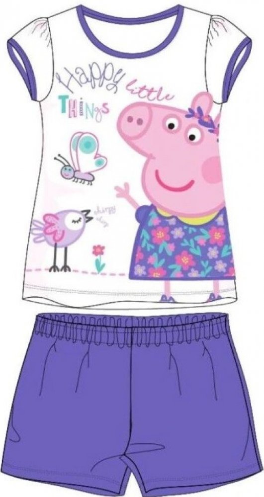 Eplusm Dívčí pyžamo PEPPA PIG motýl a ptáček krátké Šedorůžová