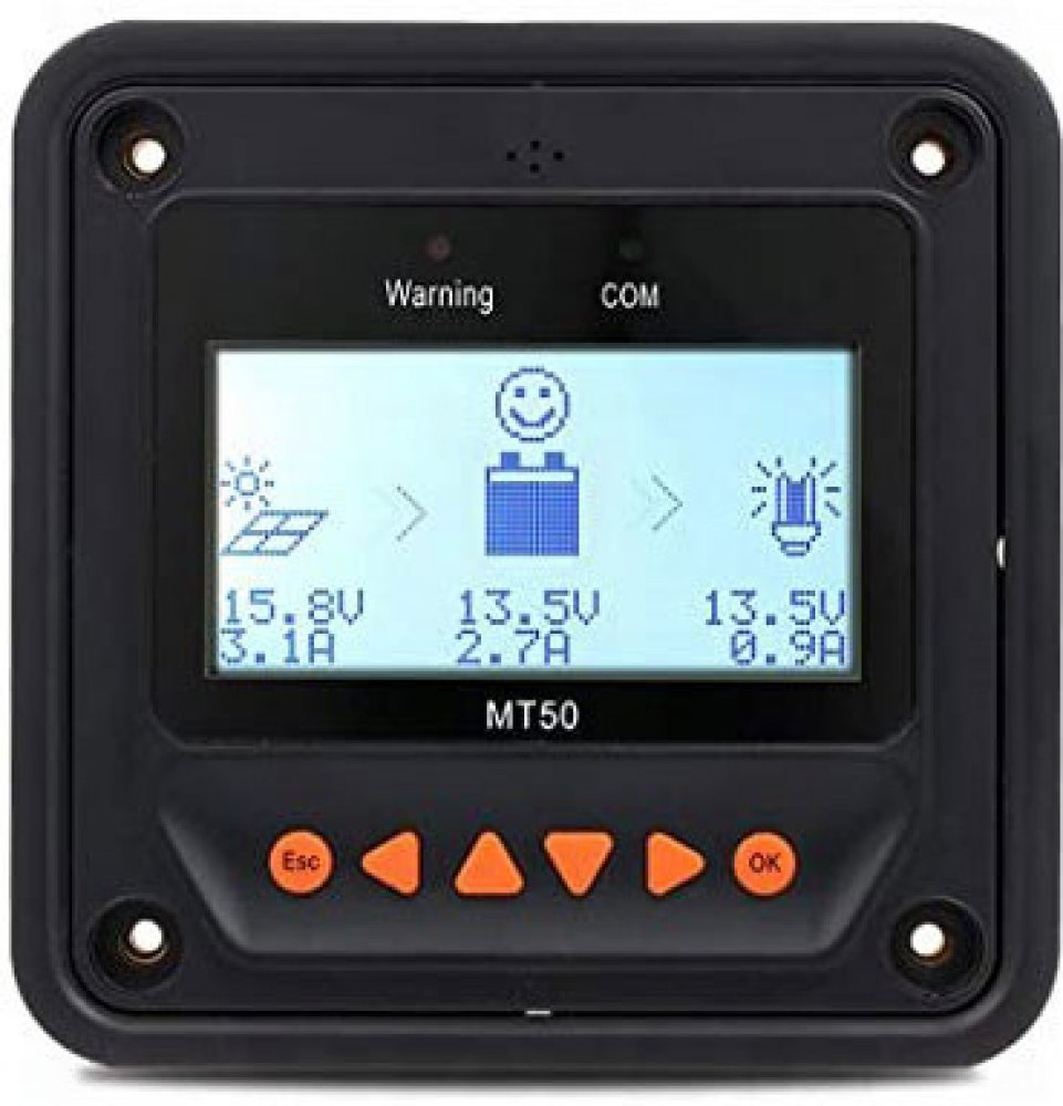 Tento produkt je nutný pro plné ovládání solárního regulátoru.Je určen pro vzdálenou správu a zobrazení hodnot proudu, napětí a stavu regulátoru. Displej je určen pro montáž na stěnu a umožňuje nepřetržitou kontrolu vašeho solárního systému z pohodlí obývacího pokoje.