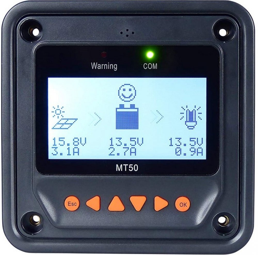 Displej je dodáván včetně montážního příslušenství a kabelu. Displej MT-50 je kompatibilní s regulátory EPsolar série XTRA, série BN, série A a série LS.