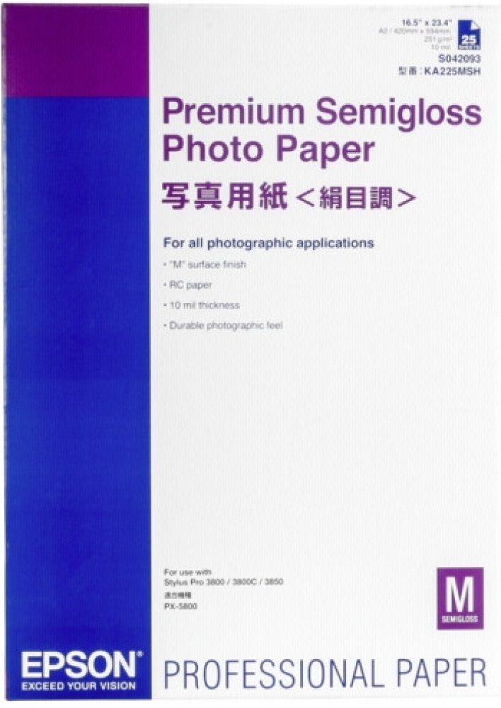 Epson Premium Semigloss Photo Paper A2, 25 listů nabízí profesionálním fotografům pracujícím s digitálními technologiemi tiskový výstup ve výstavní kvalitě. Od portrétu po krajinu – tento ihned schnoucí papír přináší živé fotografie, které mohou směle konkurovat tradičním halogenidostříbrným snímkům. Kompatibilní s inkoustem UltraChrome.