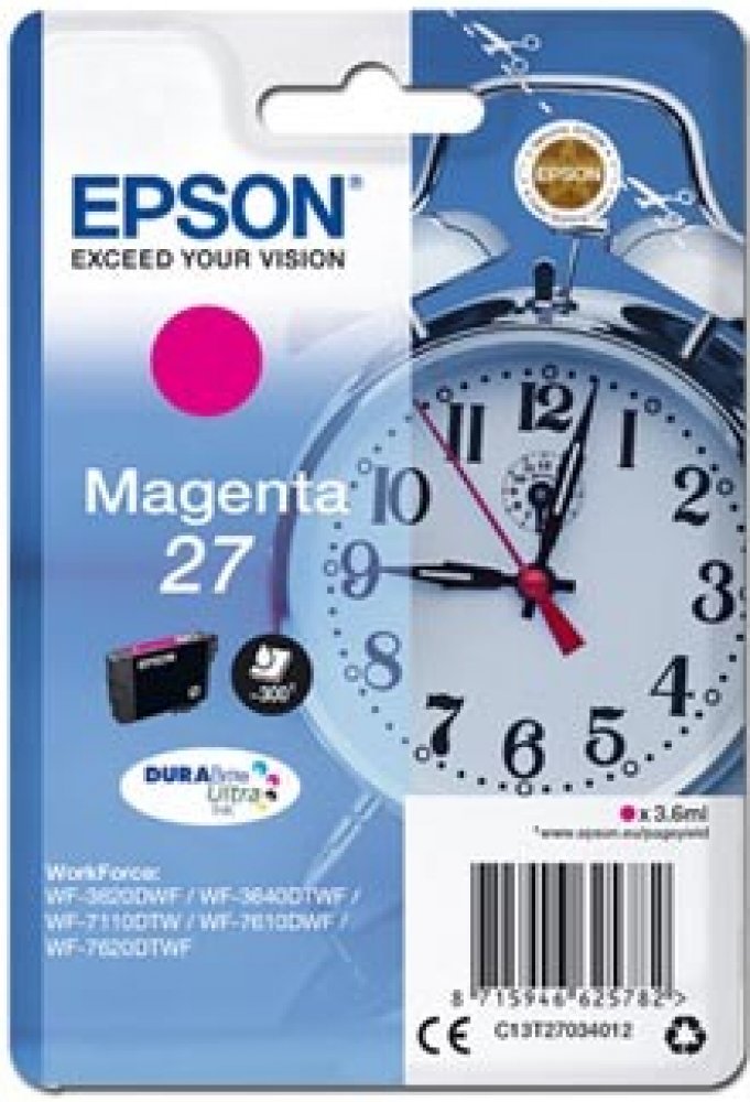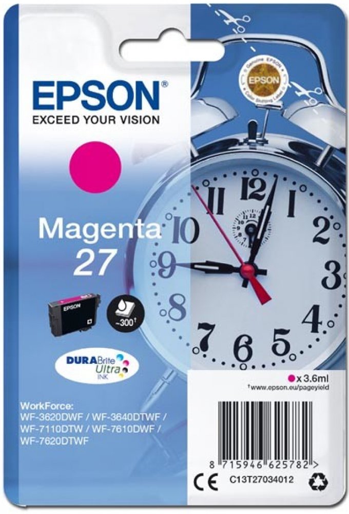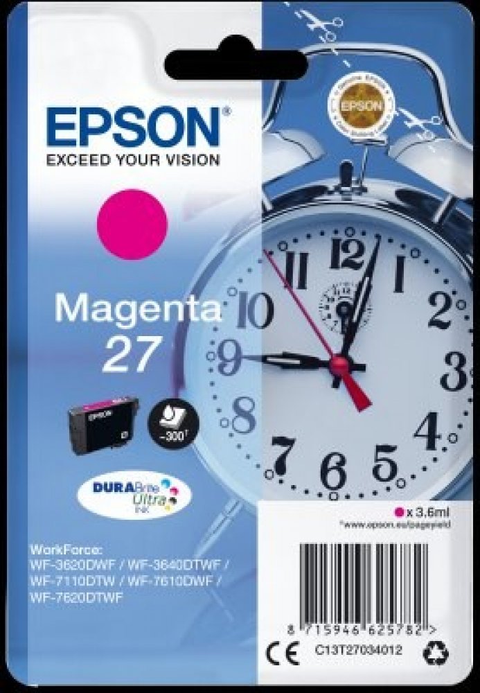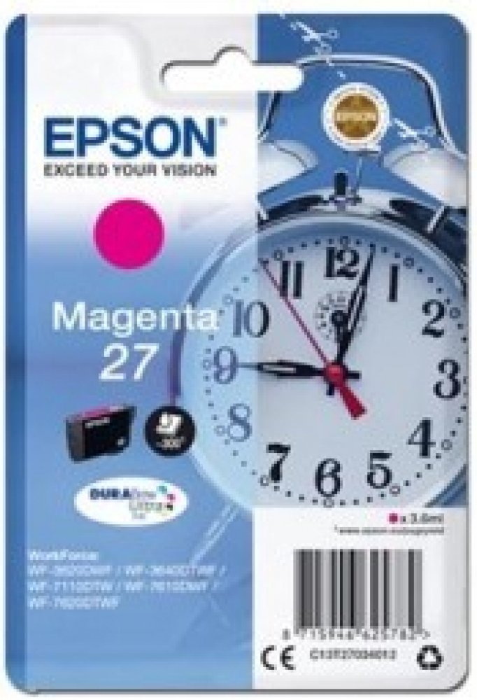 Pro tisk kvalitních textových dokumentů nebo propagačních materiálů poslouží cartridge Epson. Na různých typech papírů pro inkoustové tiskárny zaručeně dosáhnete profesionálního dojmu a vynikajících výsledků. Náplň kazety dostačuje na 300 stran. Výtěžnost náplně je měřena dle platných norem a odpovídá přibližně 5% pokrytí strany A4. Jde o originální náplň do tiskárny, která nabízí perfektní výsledky a spolehlivost. Cartridge nabízí výhodu vysoké rychlosti a kvality tisku. Navíc nabízí přirozenější barvy a plynulé přechody při tisku fotografií. Součástí balení je jednobarevná náplň. Barva inkoustu je purpurová. Zásadní přednosti cartridge Epson T2703 27 purpurová Cartridge Epson zajišťuje tisk textových dokumentů ve skvělé kvalitě Počet výtisků při 5% pokrytí strany je 300 stran Originální cartridge zajišťuje trvalou spolehlivost a výkon Součástí dodávky je jednobarevná náplň Barva inkoustu náplně do tiskárny je purpurová Pro tiskárny značky: Epson WorkForce a WorkForce Pro Model tiskárny: WF-3620,...