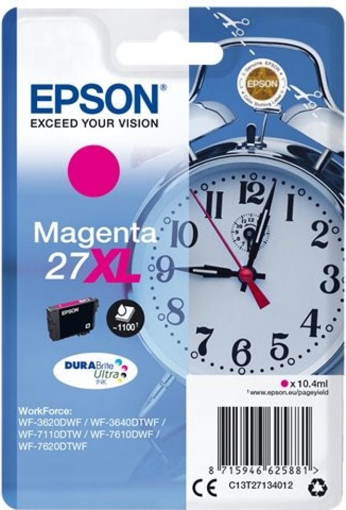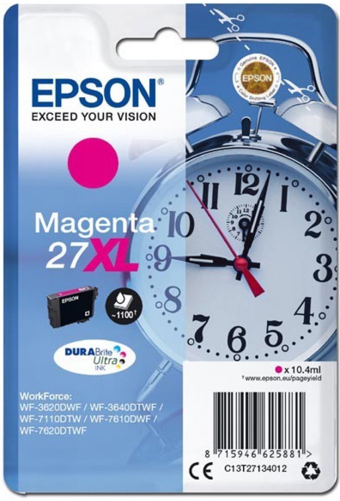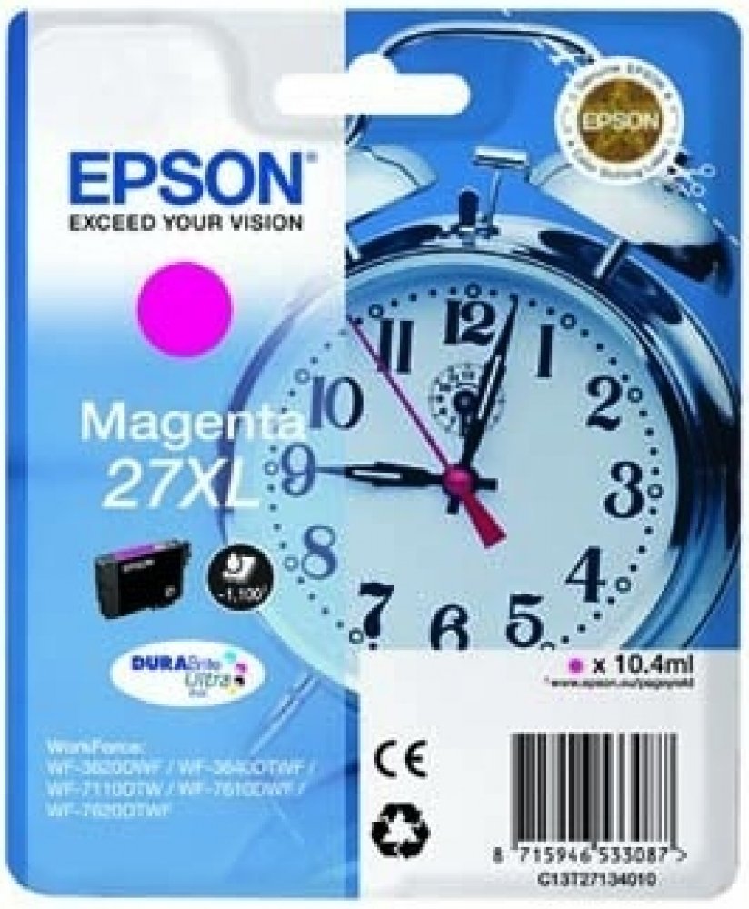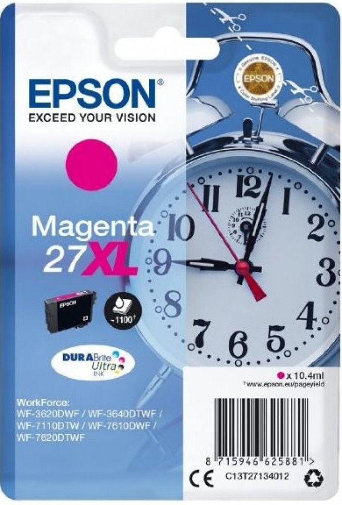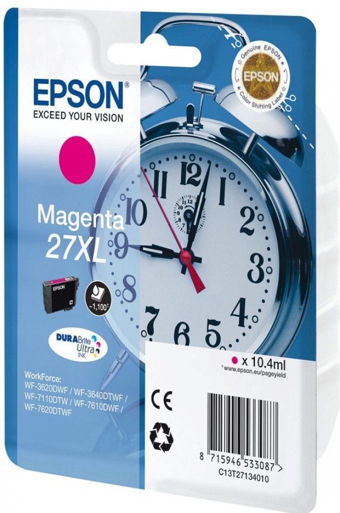 Pro tisk kvalitních textových dokumentů a reklamních materiálů vám bude určitě vyhovovat cartridge Epson. Tiskněte s vynikajícími výsledky na různých typech papírů pro inkoustové tiskárny. Objem kazety postačí na 1100 stran. Výtěžnost náplně byla stanovena testováním podle standardizované metody a odpovídá 5% pokrytí strany A4. Jde o originální náplň do tiskárny zaručující dokonalé výsledky a spolehlivost. Cartridge nabízí výhodu rychlého a kvalitního tisku. Navíc nabízí přirozenější barvy a plynulé přechody při tisku fotografií. Obsahem balení je XL jednobarevná náplň. Barva inkoustu je purpurová. Klíčové přednosti cartridge Epson T2713 27XL purpurová Cartridge Epson zajistí tisk textových dokumentů Výtěžnost při 5% pokrytí strany činí 1100 stran Jedná se o originální cartridge, která poskytuje trvalou spolehlivost a výkon Součástí balení je XL jednobarevná náplň Barva inkoustu náplně do tiskárny je purpurová Pro tiskárny značky: Epson WorkForce a WorkForce Pro Model tiskárny: WF-3620, WF-3620dwf,...