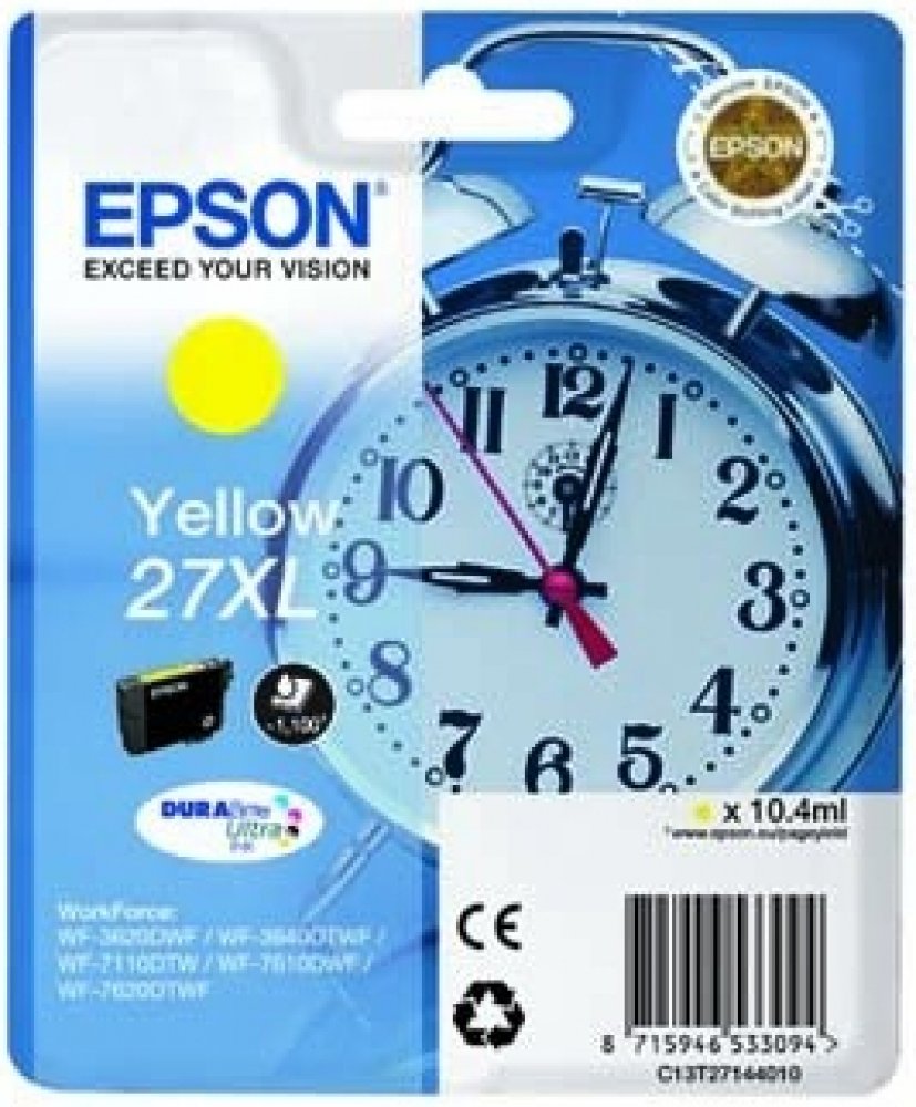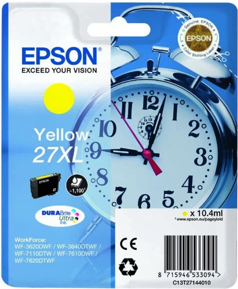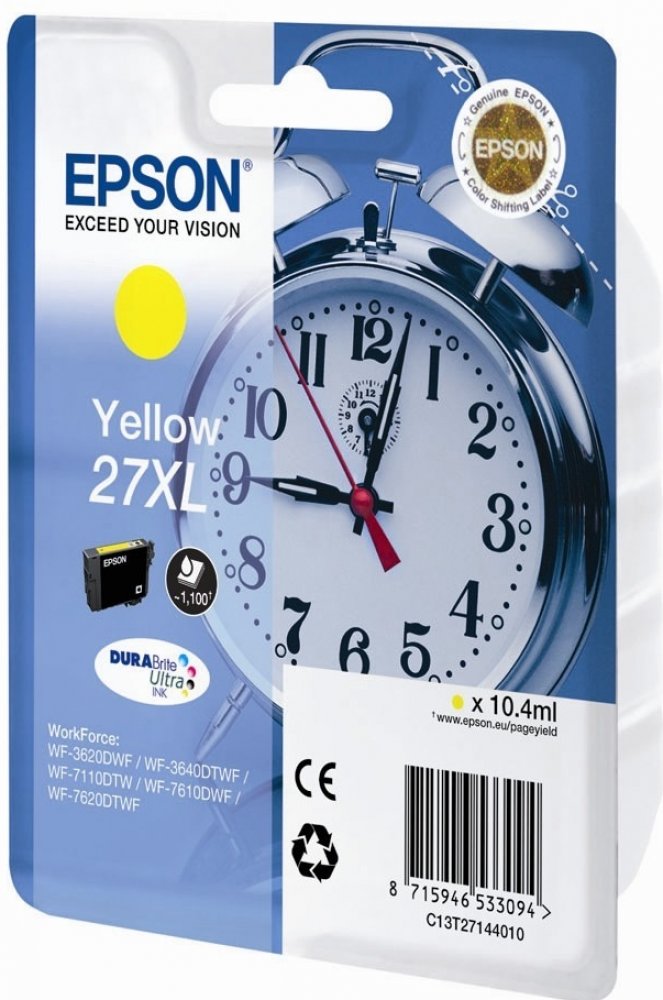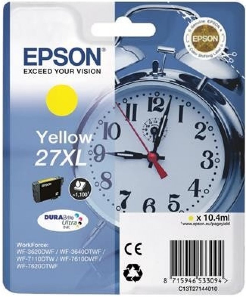 Vysokou spolehlivost a vynikající kvalitu tisku textových dokumentů zajistí cartridge Epson. Zvolte si různé typy papírů pro inkoustové tiskárny a dosáhněte vynikajících výsledků. Kazeta disponuje dostatečným objemem pro tisk 1100 stran. Výtěžnost náplně byla testována standardizovanou metodou dle platných norem a její hodnota odpovídá výtěžnosti při 5% pokrytí strany A4. Jde o originální náplň do tiskárny, která poskytuje perfektní výsledky a trvalou spolehlivost. Cartridge nabízí výhodu rychlého a kvalitního tisku. Navíc je ideální pro tisk fotografií, díky přirozenějším barvám a plynulým přechodům. V balení se nachází XL jednobarevná náplň. Barva inkoustu je žlutá. Hlavní vlastnosti cartridge Epson T2714 27XL žlutá Cartridge Epson zajišťuje profesionální tisk Výtěžnost při 5% pokrytí strany dosahuje 1100 stran Cartridge je originální a její výkon je velmi spolehlivý Součástí balení je XL jednobarevná náplň Barva inkoustu náplně do tiskárny je žlutá Pro tiskárny značky: Epson WorkForce a WorkForce Pro...