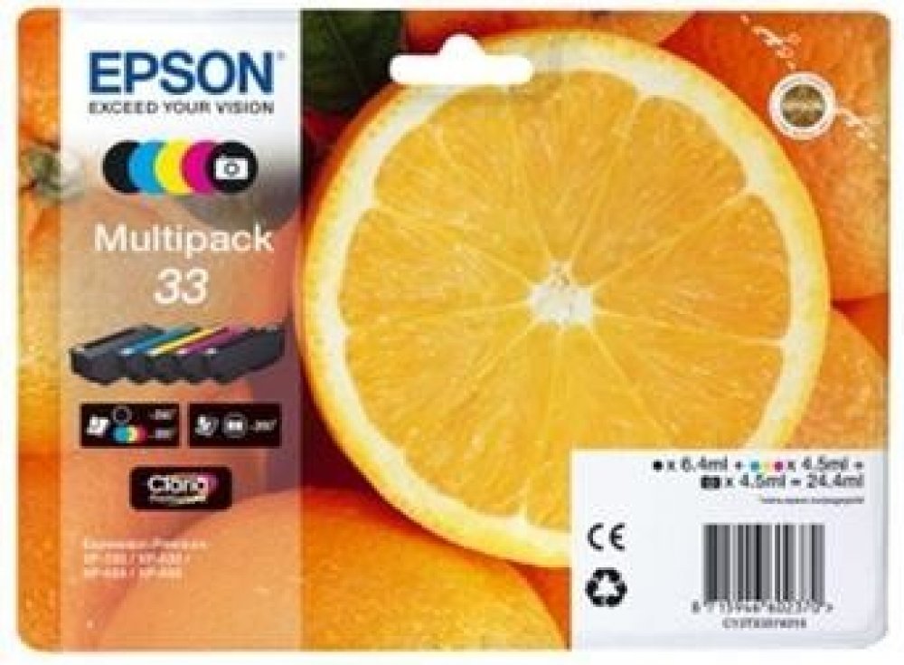Pro tisk bohatých textových dokumentů a marketingových materiálů je určená cartridge Epson. Vytvořte dokonalý profesionální vzhled a dosahujte špičkových výsledků na široké škále papírů určených pro inkoustové tiskárny. Kapacita kazety vystačí na 530 stran. Výtěžnost náplně byla stanovena standardizovanou metodou a odpovídá 5% pokrytí strany A4. Jedná se o originální náplň do tiskárny, která nabízí perfektní výsledky a spolehlivost. Cartridge nabízí výhodu vysoké rychlosti a kvality tisku. K tomu je nejlepší volbou pro tisk fotografií, díky přirozeným barvám a plynulým přechodům. Obsah balení tvoří XL multipack více barev. Barva inkoustu je azurová, černá, purpurová a žlutá. Klíčové vlastnosti cartridge Epson T33XL Multipack Cartridge Epson poskytuje prvotřídní kvalitu tisku Při 5% pokrytí strany činí výtěžnost 530 stran Cartridge je originální a její výkon je velmi spolehlivý Součástí dodávky je XL multipack více barev Barva inkoustu náplně do tiskárny je azurová, černá, purpurová a žlutá Pro tiskárny...