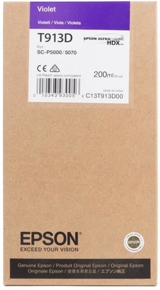 Originální inkoustová kazeta (cartridge) Epson T913D, C13T913D00 v barvě fialová (purple). Jeho kapacita je stran. Cartridge od výrobce Epson splňuje mezinárodní standardy, díky čemuž je garantována vysoká kvalita tisku.