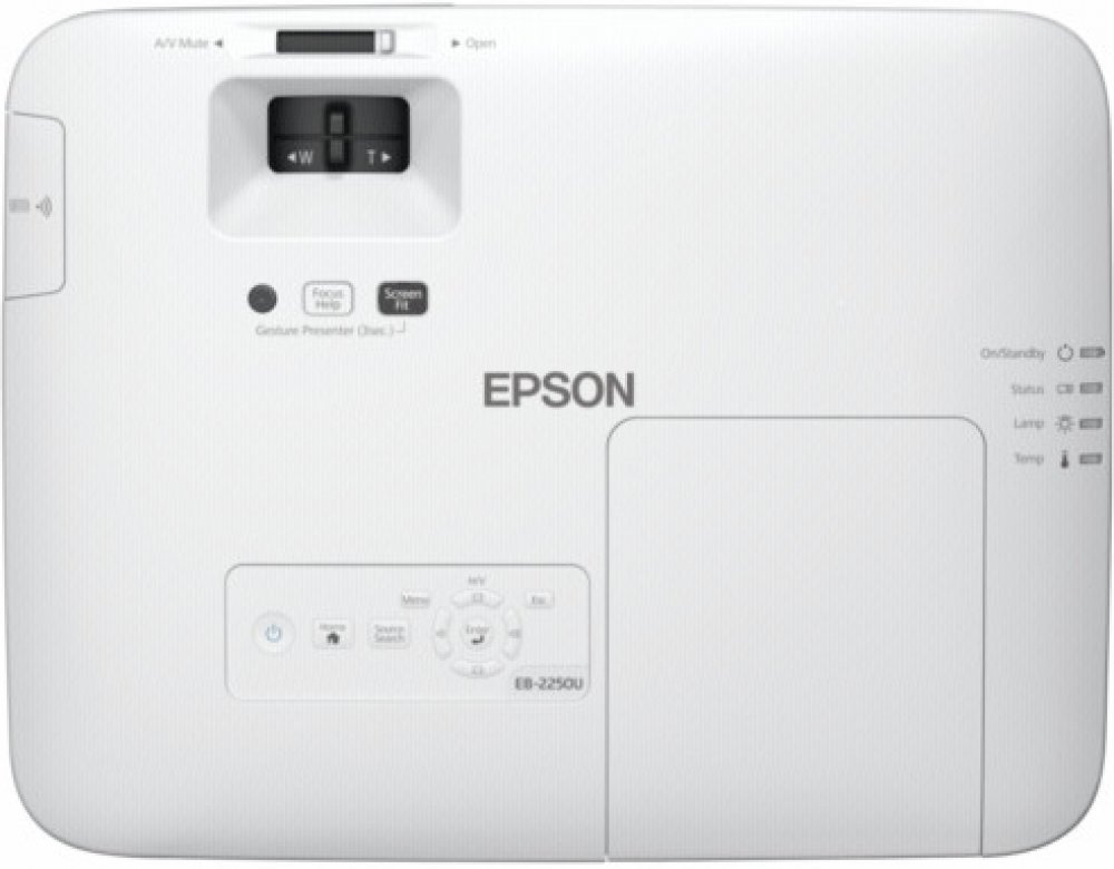 Projektor EB-2250U je navržen pro náročné firemní použití. Díky 3LCD technologii a vysokému světelnému výkonu 5 000 lumenů zobrazí prezentace, grafy a videa ve skvělém kontrastu a živých barvách. Rozlišení WUXGA je ideální pro detailní obsah z notebooku nebo tabletu – uvidíte každý pixel!