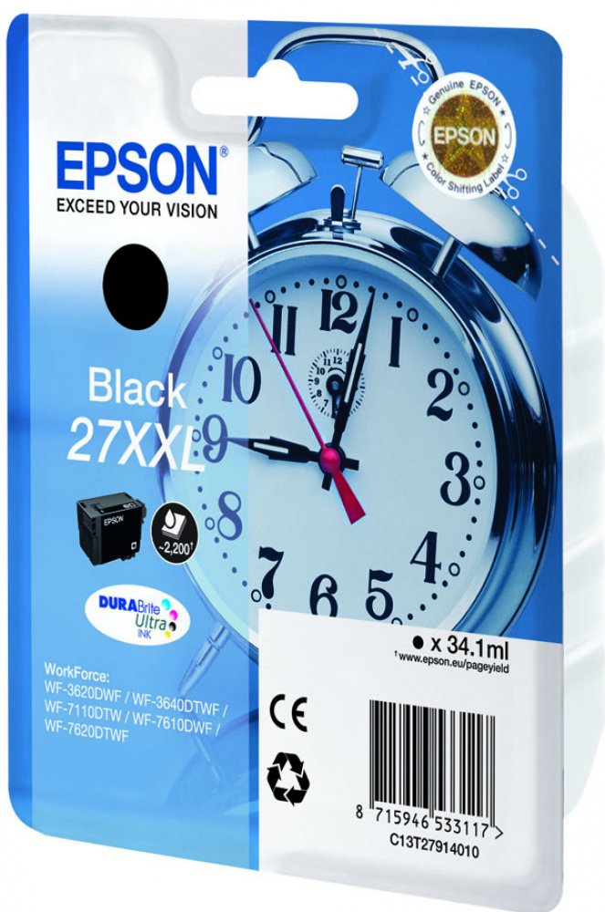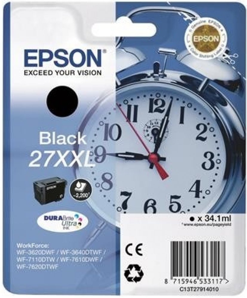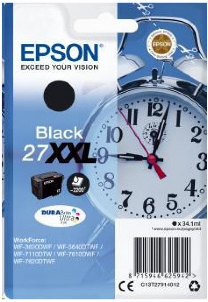 Pro tisk kvalitních textových dokumentů a reklamních materiálů vám bude určitě vyhovovat cartridge Epson. Dosahujte dokonalého vzhledu a vynikajících výsledků na široké škále papírů určených pro inkoustové tiskárny. Objem náplně pokryje tisk 2200 stran. Výtěžnost náplně odpovídá 5% pokrytí strany A4 dle platných norem. Jde o originální náplň do tiskárny, která nabízí perfektní výsledky a spolehlivost. Používání cartridge má mnoho výhod, jako je vysoká rychlost a kvalita tisku. Navíc nabízí přirozenější barvy a plynulé přechody při tisku fotografií. Součástí balení je XL jednobarevná náplň. Barva inkoustu je černá. Klíčové přednosti cartridge Epson T2791 27XXL černá Cartridge Epson poskytuje prvotřídní kvalitu tisku Výtěžnost při 5% pokrytí strany dosahuje 2200 stran Jedná se o originální cartridge s trvale spolehlivým výkonem Obsah balení tvoří XL jednobarevná náplň Barva inkoustu náplně do tiskárny je černá Pro tiskárny značky: Epson WorkForce a WorkForce Pro Model tiskárny: WF-3620, WF-3620dwf, WF-3620,...