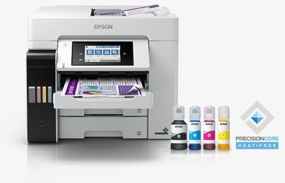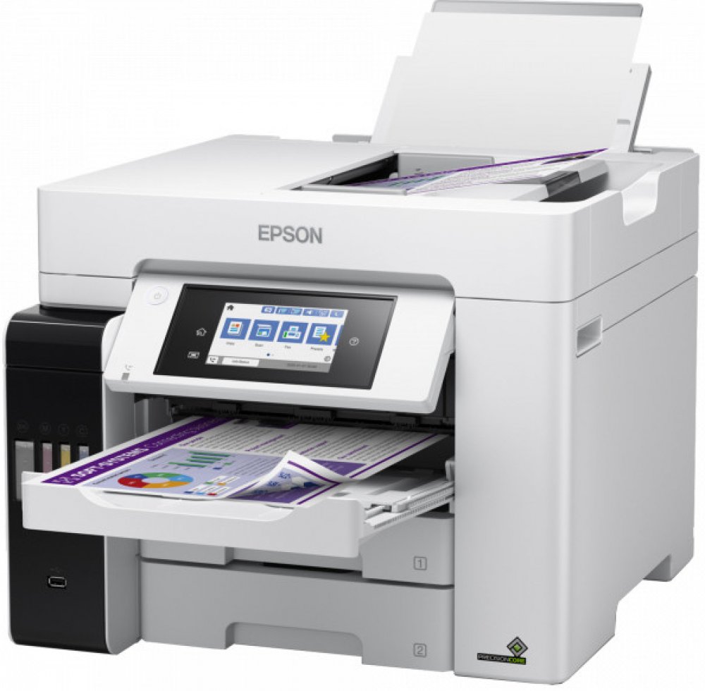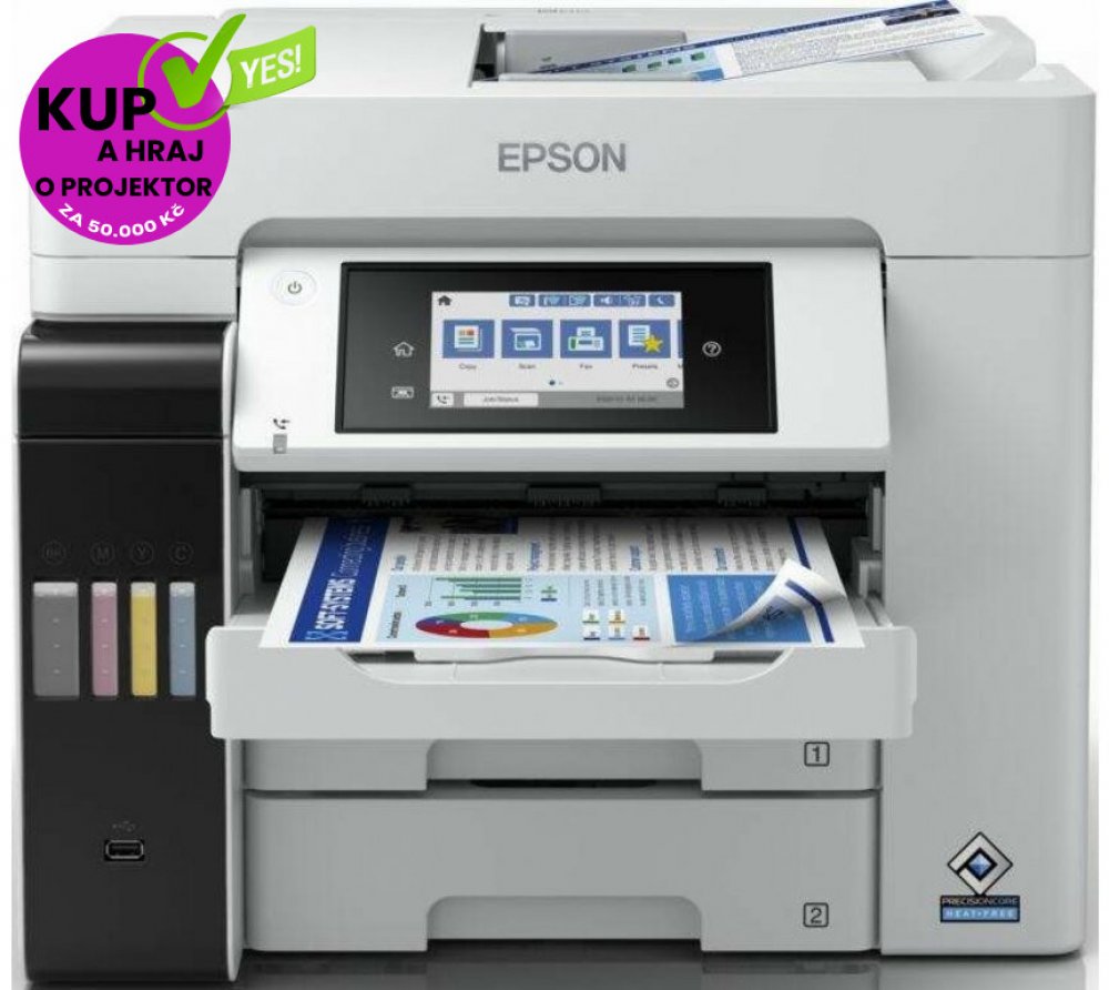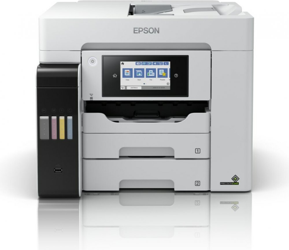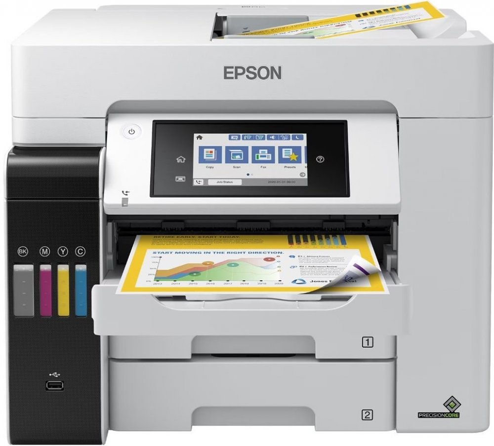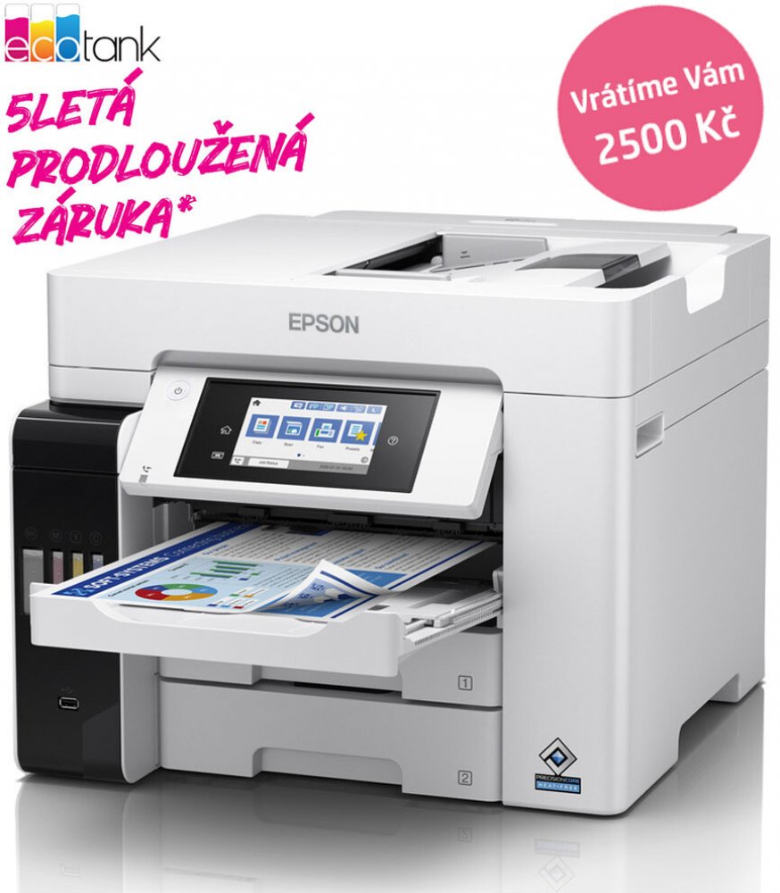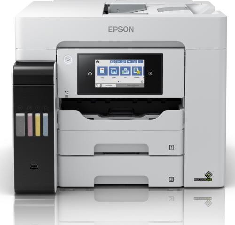 Tato snadno použitelná tiskárna EcoTank Pro Wi-Fi umožňuje tisknout, skenovat, kopírovat a faxovat dokumenty s výjimečně nízkými náklady na jednu stranu a nízkou spotřebou energie díky technologii Heat-Free PrecisionCore. Vysoká rychlost tisku a skenování šetří váš čas. Dva přední zásobníky na 250 listů A4, zadní podavač na 50 listů a automatický podavač dokumentů s kapacitou 50 listů A4 navíc odstraňují nutnost častého doplňování papíru.