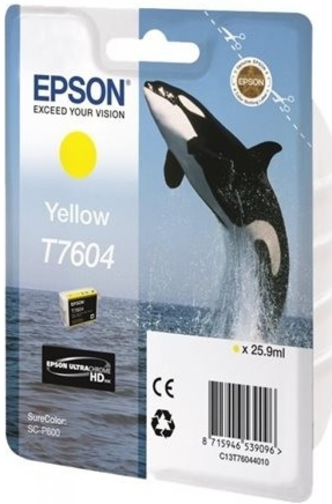 Vysokou spolehlivost a vynikající kvalitu tisku textových dokumentů zajistí cartridge Epson. Zajistěte si dokonalý dojem a excelentní výsledky na různých typech papírů určených pro inkoustové tiskárny. Dostatečná kapacita kazety umožňuje tisk 2100 stran. Výtěžnost náplně byla stanovena testováním podle standardizované metody a odpovídá 5% pokrytí strany A4. Jedná se o originální náplň do tiskárny poskytující kvalitní výsledky a spolehlivý výkon. Cartridge je skvělou volbou pro vysokou rychlost a kvalitu tisku. Navíc nabízí přirozenější barvy a plynulé přechody při tisku fotografií. V balení se nachází jednobarevná náplň. Barva inkoustu je žlutá. Zásadní přednosti cartridge Epson T7604 žlutá Cartridge Epson zajistí tisk textových dokumentů Počet výtisků při 5% pokrytí strany je 2100 stran Jedná se o originální cartridge, která poskytuje trvalou spolehlivost a výkon Obsah balení tvoří jednobarevná náplň Barva inkoustu náplně do tiskárny je žlutá Pro tiskárny značky: Epson SureColor Model tiskárny: P600