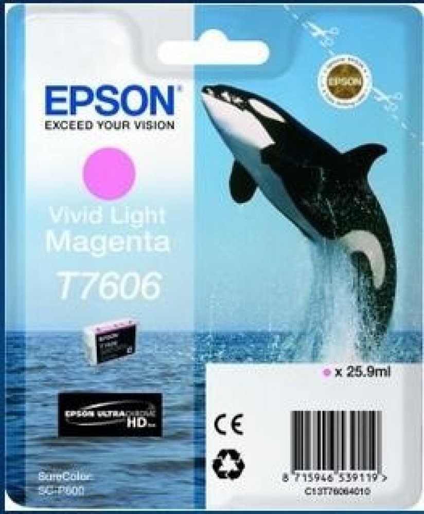Proč používat originální inkoust EPSON? Nízké počáteční náklady jsou přirozeně lákavé, ale pokud skončíte s vadným produktem, může to být z dlouhodobého hlediska nákladné zklamání. Můžete si být jisti, že repasovaná nebo kompatibilní inkoustová kazeta bude fungovat? A co když nakonec strávíte více času a peněz opětovným tiskem dokumentů, které nejsou dostatečně kvalitní při prvním výtisku? Na inkousty jiných výrobců se navíc nevztahuje záruka společnosti Epson. Pokud poškodí vaši tiskárnu, může být záruka neplatná. Vice se můžete dočíst na oficiálních stránkách EPSON. Inkoust pro tiskárny budoucnosti s technologií HEAT-FREE Díky technologii Heat-Free produkují EPSON inkoustové tiskárny o 96 % méně použitého spotřebního materiálu než laserové tiskárny, což napomáhá jak v oblasti snížení nákladů na tisk, tak zmírnění dopadu na životní prostředí a to vše bez jakýchkoliv kompromisů. Detailnější popis této technologie najdete na stránkách EPSON. Technické údaje Inkoust je vhodný pro zařízení ze série Epson - Surecolor P-600 Typ balení Ink supply unit Obsah 1x Jasná světle purpurová 25,9 ml Velikost Standartní Symbol kosatka T7606 Technologie Ultrachrome® HD .