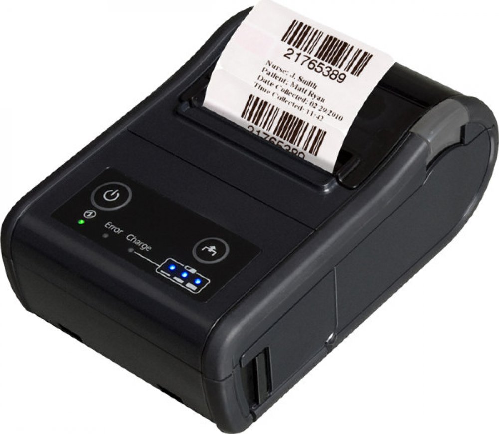 label printer, direct thermal, 8 dots/mm (203 dpi), media width (max.): 58 mm, print width (max.): 54mm, roll diameter (max.): 50mm, speed (max.): 100 mm/s, USB, Bluetooth, OPOS, ESC/POS, JavaPOS, ePOS, peeler, incl.: cable (USB), power supply unit, power cable, belt clip, battery, receipt roll