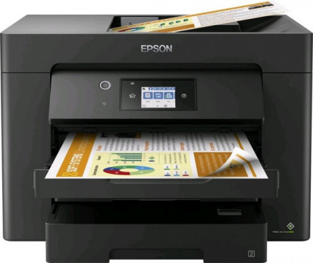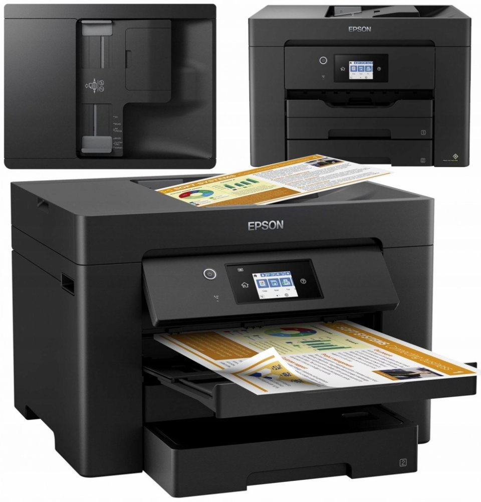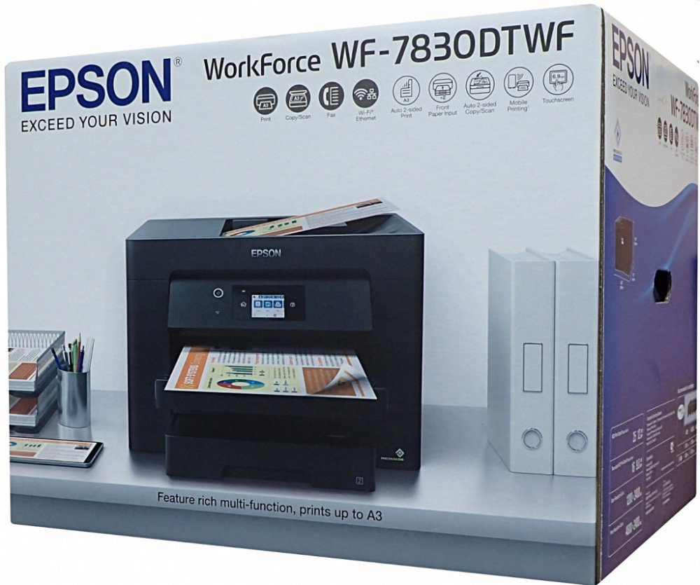 Epson WorkForce WF-7830DTWF. Tisková technologie: InkJet, Tisk: Barevný tisk, Maximální rozlišení: 4800 x 2400 DPI. Skenování: Barevné skenování, Rozlišení optického skenování: 1200 x 2400 DPI. Faxování: Barevné faxování. Maximální velikost papíru série A standardu ISO: A3. Wi-Fi. Barva: Černá