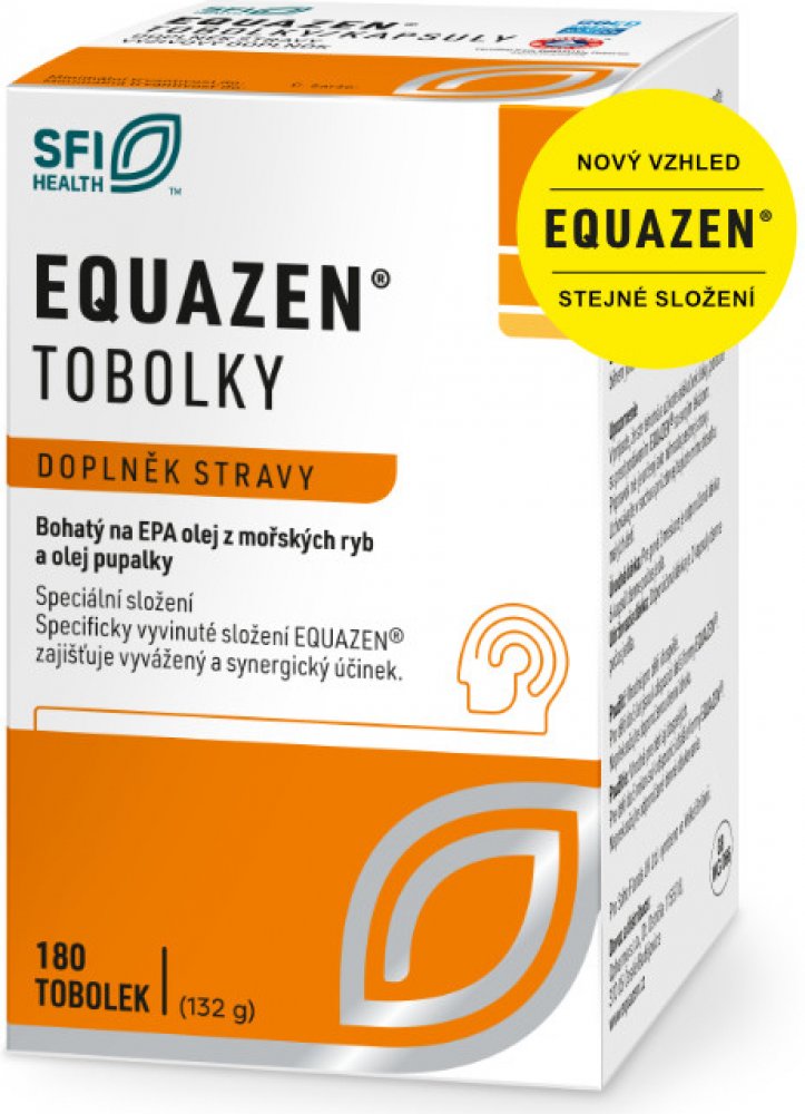 - Doplněk stravy pro děti od 5 let. EQUAZEN tobolky obsahují olej z mořských ryb a pupalkový olej – speciální kombinaci vybraných mastných kyselin omega-3 a omega-6 s vysokým obsahem omega-3 EPA. Tento přírodní přípravek byl použit v řadě publikovaných, placebem kontrolovaných klinických studiích u dětí a dospívajících s potížemi s pozorností, soustředěním, čtením a psaním a opožděním ve vývoji řeči a s potížemi v chování.* EQUAZEN poskytuje organismu mastné kyseliny omega-3 EPA, omega-3 DHA a omega-6 GLA ve vyváženém poměru, který umožňuje jejich efektivní využití naším organismem.