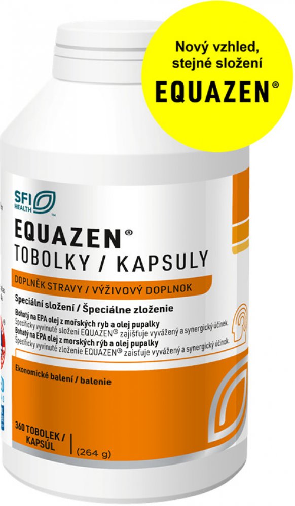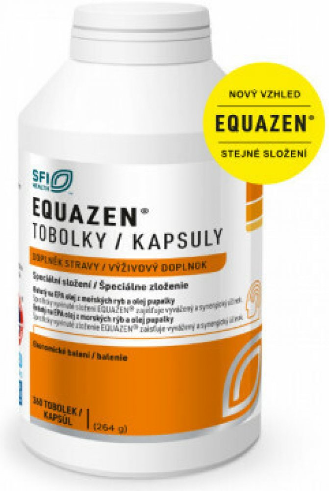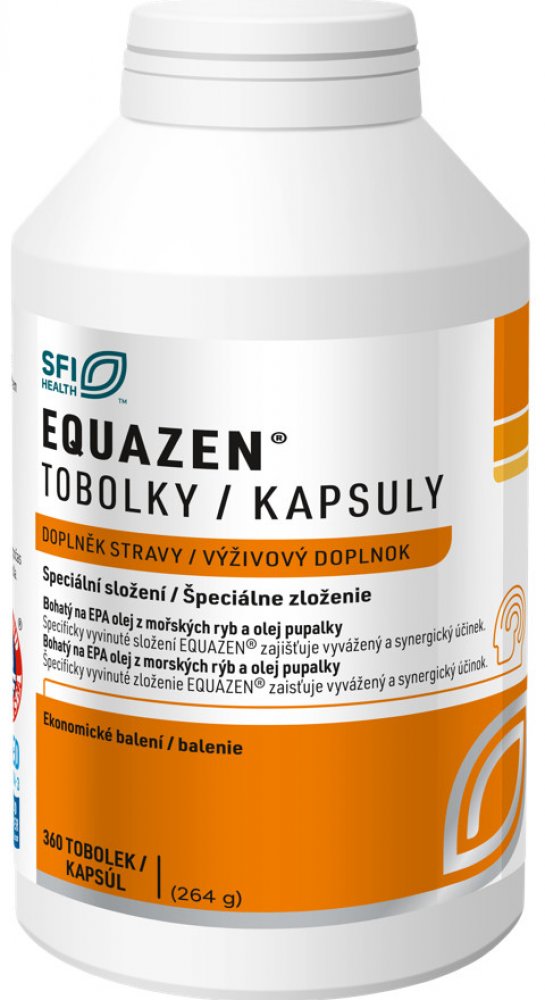 - Doplněk stravy pro děti od 5 let. EQUAZEN tobolky obsahují olej z mořských ryb a pupalkový olej – speciální kombinaci vybraných mastných kyselin omega-3 a omega-6 s vysokým obsahem omega-3 EPA. Tento přírodní přípravek byl použit v řadě publikovanýc...