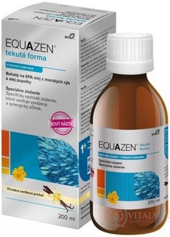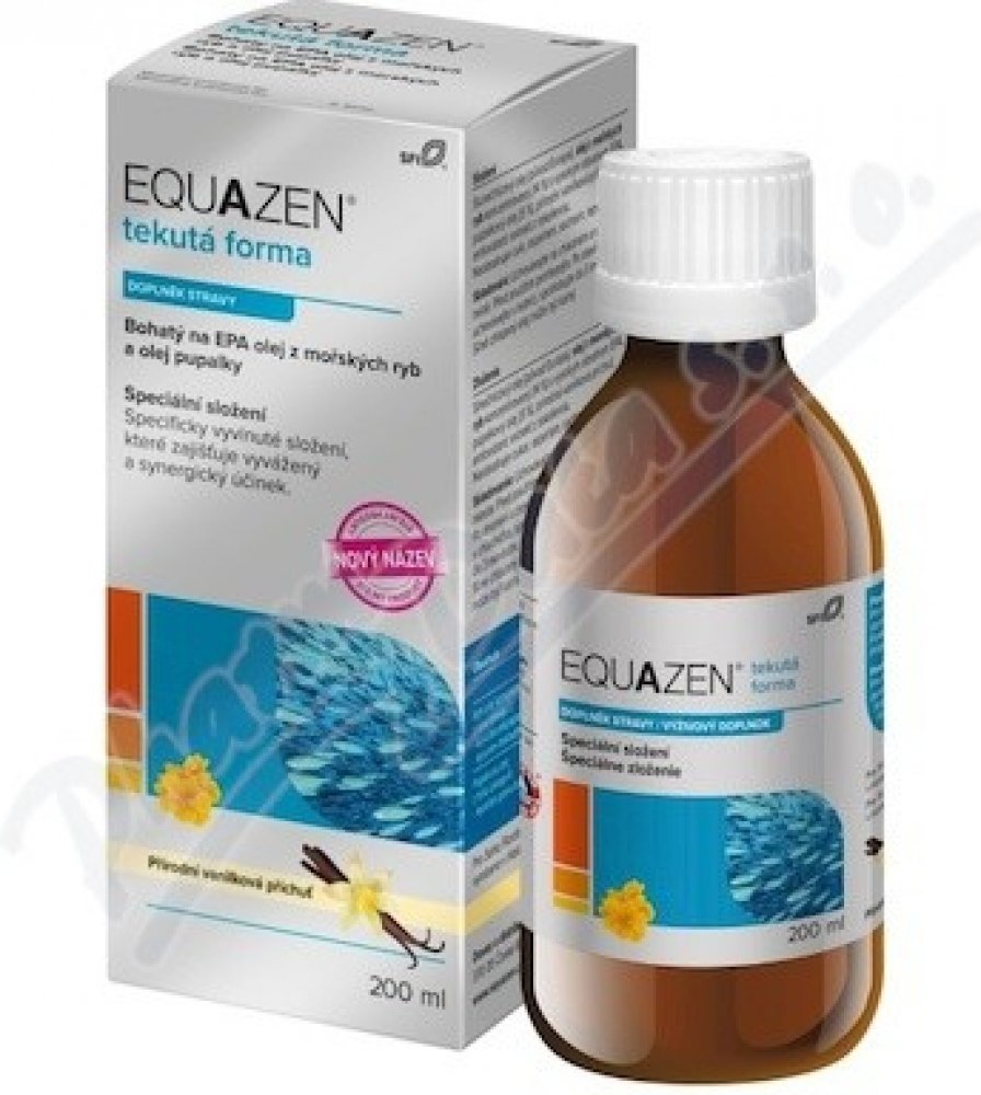 - Doplněk stravy pro děti od 1 roku a dospělé. EQUAZEN tekutá forma s příchutí vanilky 200 ml obsahuje olej z mořsk...