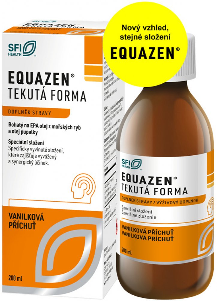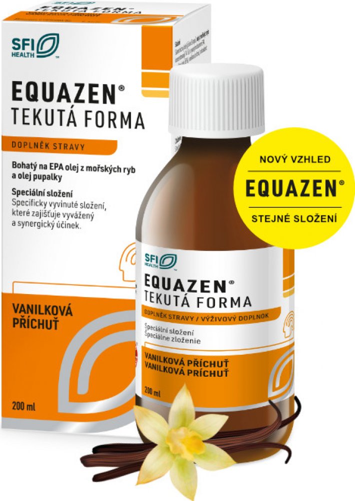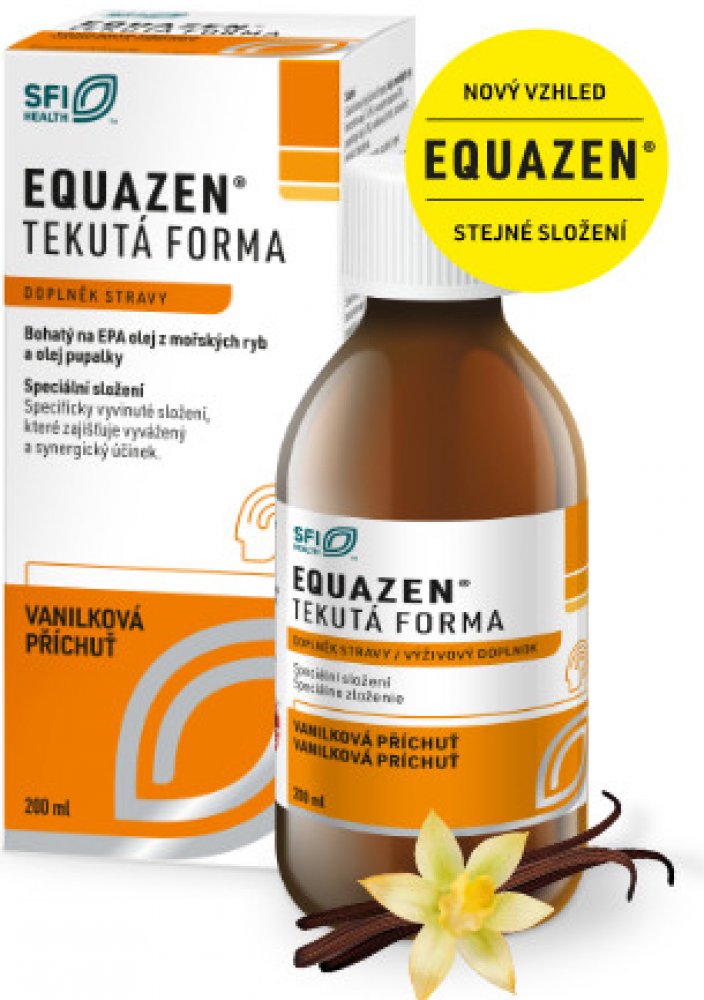 - EQUAZEN tekutá forma s příchutí vanilky obsahuje olej z mořských ryb a pupalkový olej – kombinaci omega-3 a 6 mastných kyselin s vysokým obsahem EPA. EQUAZEN tekutá forma jako jediný ve své kategorii získal souhlas České pediatrické společnosti pro podávání dětem od jednoho roku.
