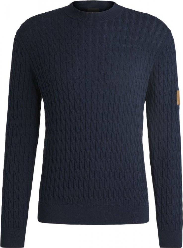 Vyrobený ze 100% bavlny, nabízí maximální pohodlí a prodyšnost. Svetr je zdobený elegantním splétaným vzorem, který mu dodává sofistikovaný a nadčasový vzhled. Rukáv je navíc ozdoben logem Boss Equestrian z umělé kůže, což přidává k celkovému stylu jemný, ale výrazný detail. Tento svetr je leh...
